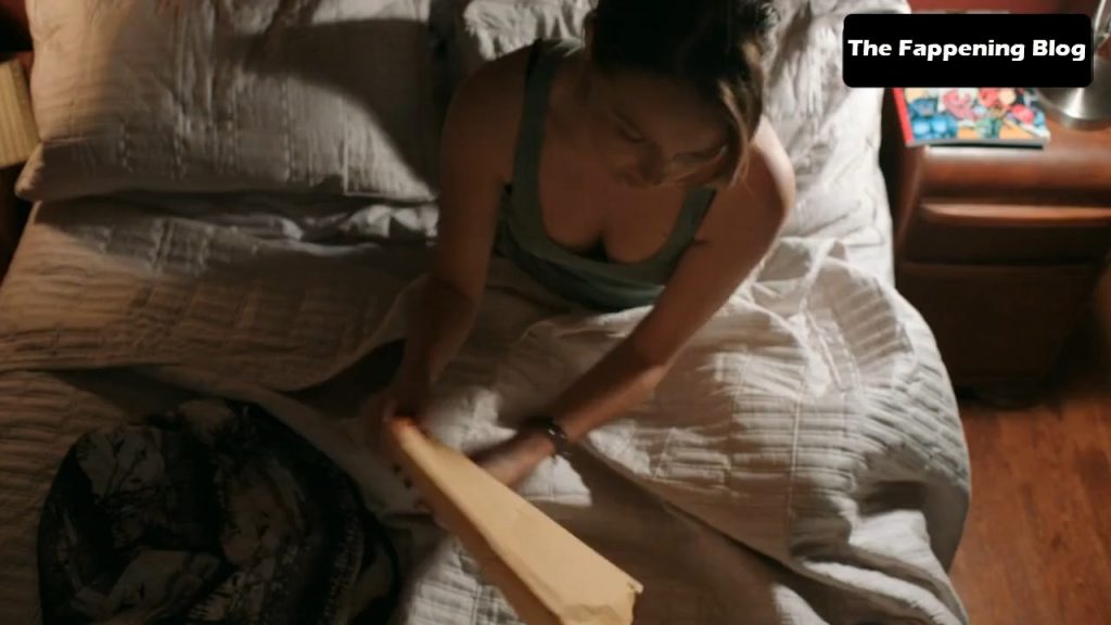 Camilla Luddington displays her cleavage in the sexy scene.