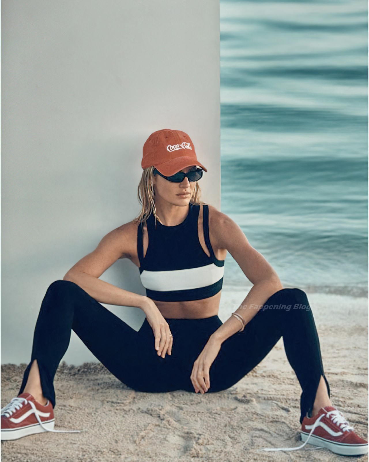Ella combina trajes de baño con ropa deportiva para un guardarropa inspirado en el athleisure. Una pieza destacada de la temporada son los leggings Form, que cuentan con una pretina de talle alto y estribos. También está Circ, un top de sujetador con cuello alto y banda elástica.