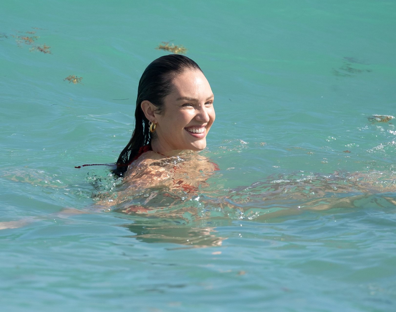 Model Candice Swanepoel (30) muestra su sexy cuerpo en bikini post parto en la playa de Miami, 12/08/2018.