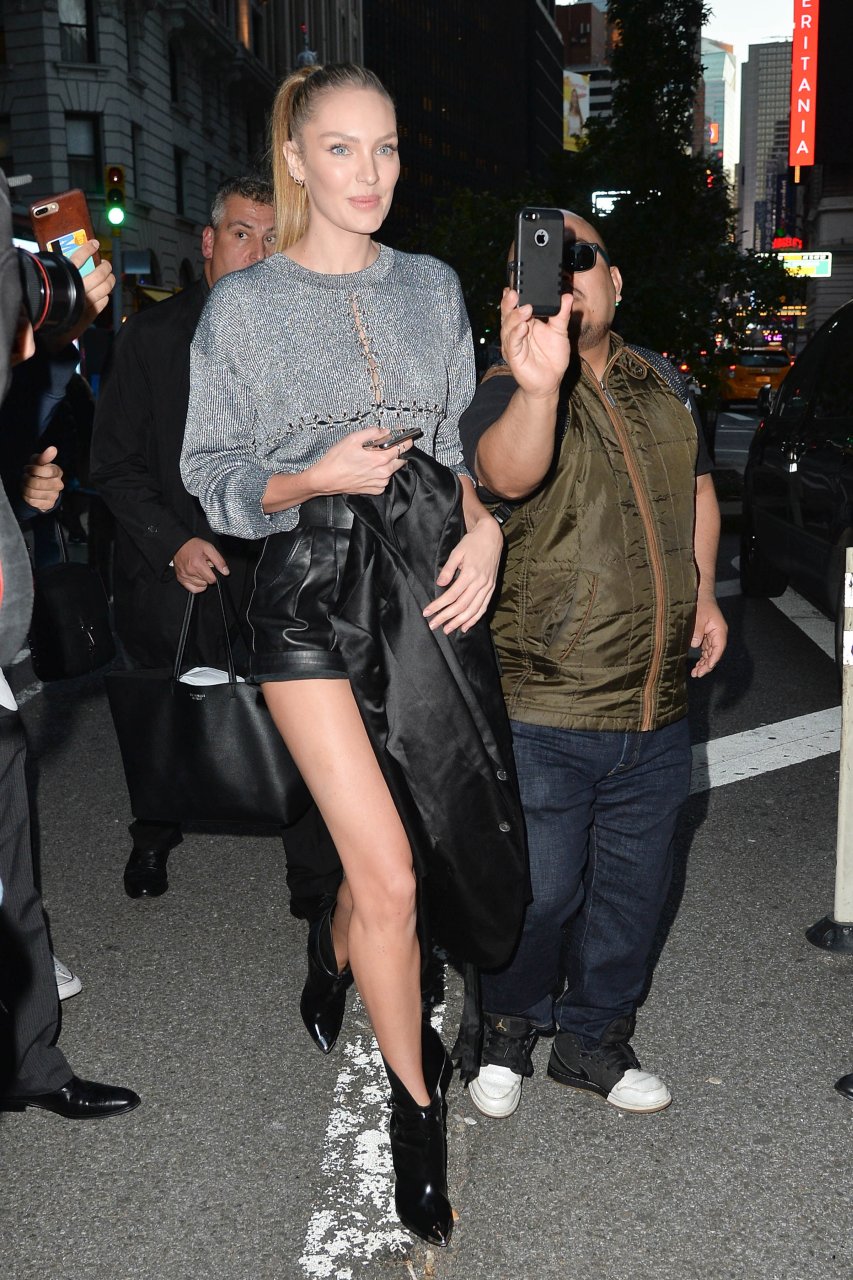 la esbelta Candice Swanepoel sale de las oficinas de Victoria’s Secret después de sus pruebas para el desfile anual en la ciudad de Nueva York, 30/10/2018.