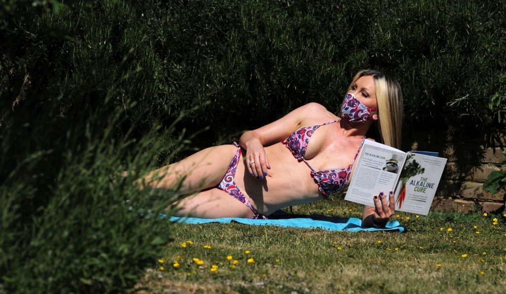La modelo estadounidense de 48 años Caprice Bourret muestra su físico tonificado mientras toma el sol con un sexy trikini de tres piezas a juego en un parque de Londres, disfrutando del reciente clima cálido de verano, 31/05/2020.