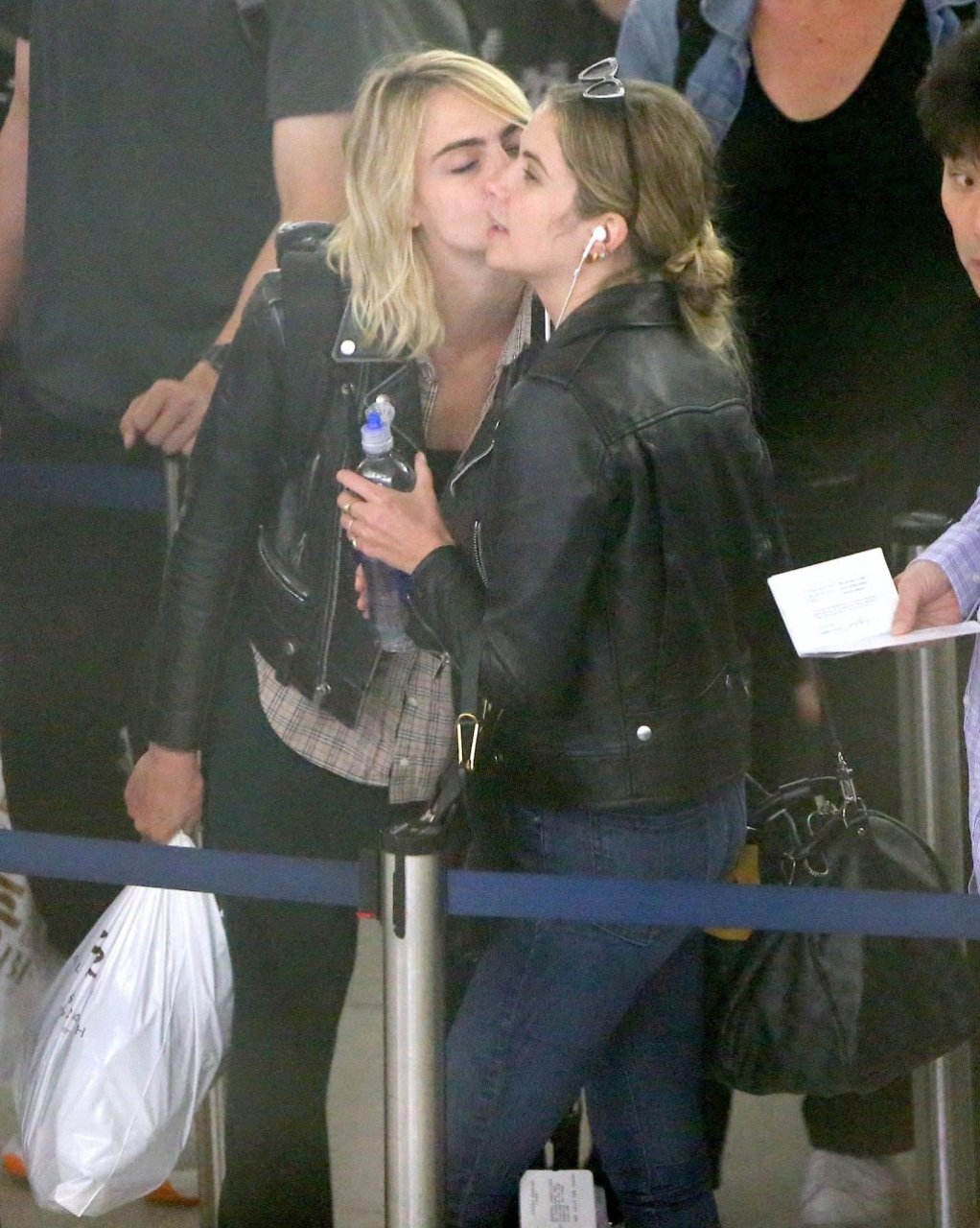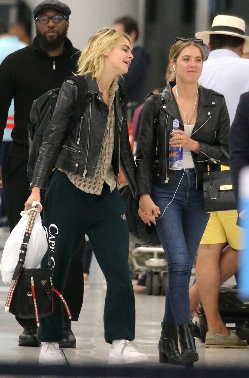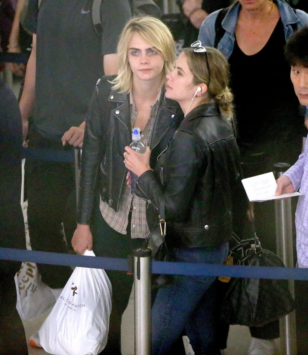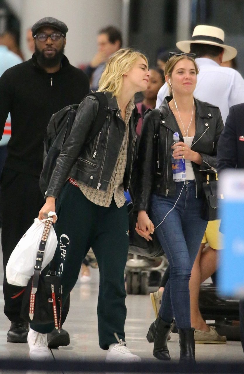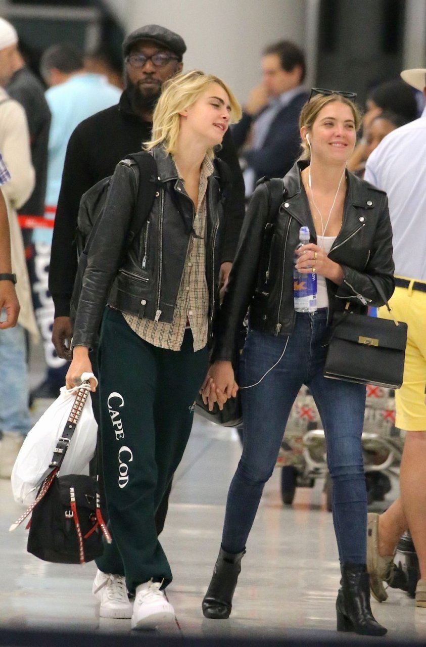 Mira las nuevas fotos de paparazzi de la famosa pareja lesbiana. Cara Delevingne y Ashley Benson fueron vistas en el aeropuerto JFK de Nueva York besándose y abrazándose en la fila de seguridad, 18/06/2019.