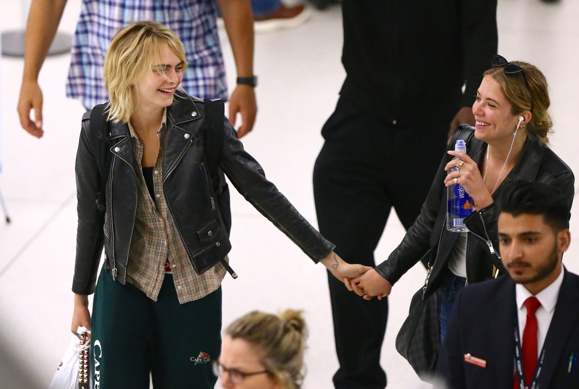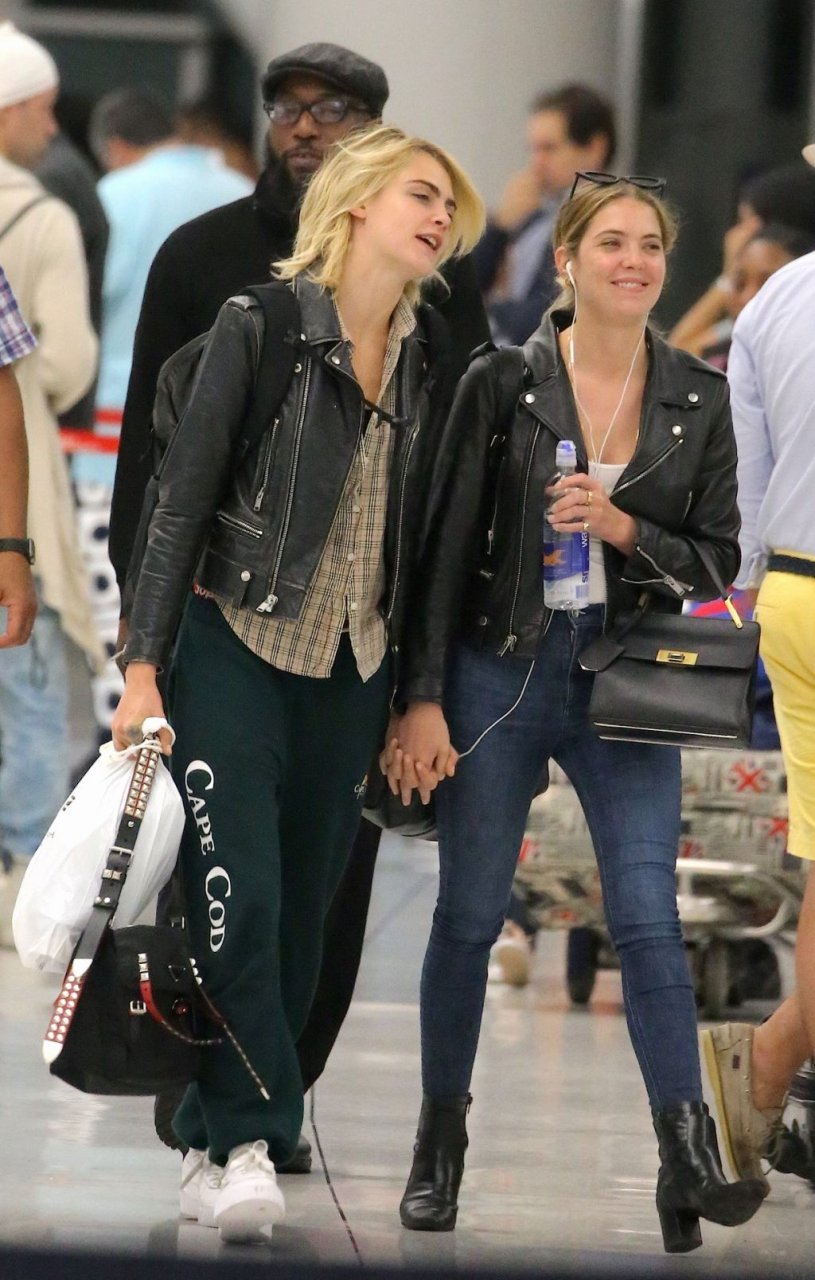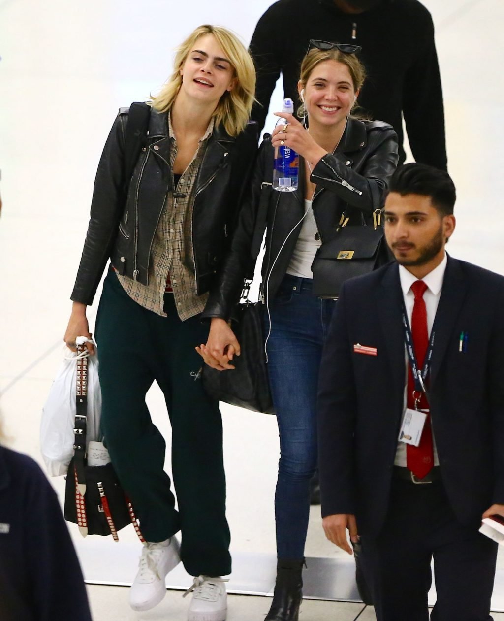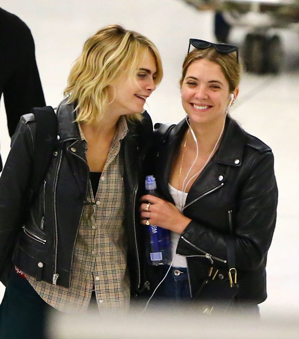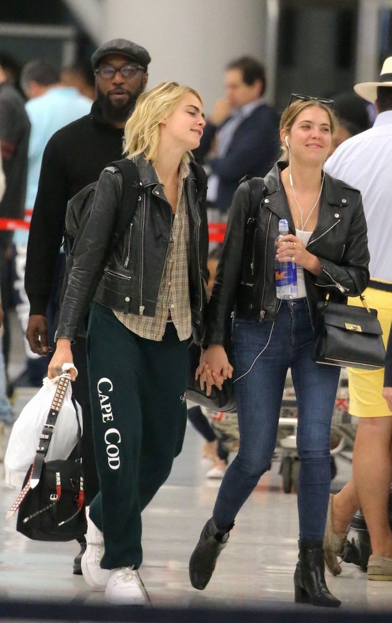 Mira las nuevas fotos de paparazzi de la famosa pareja lesbiana. Cara Delevingne y Ashley Benson fueron vistas en el aeropuerto JFK de Nueva York besándose y abrazándose en la fila de seguridad, 18/06/2019.