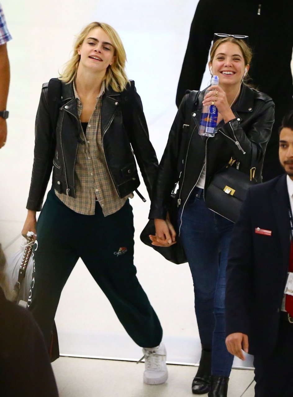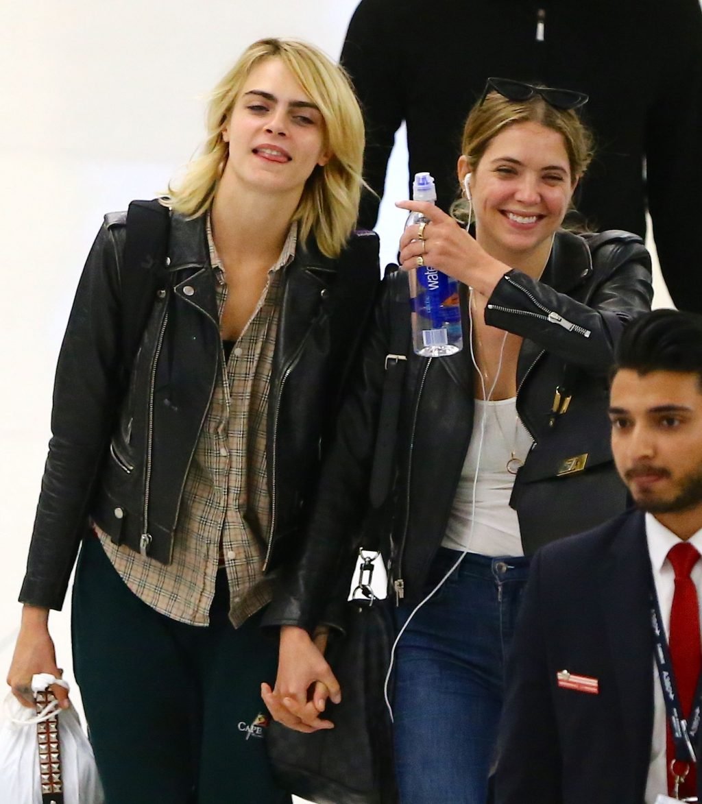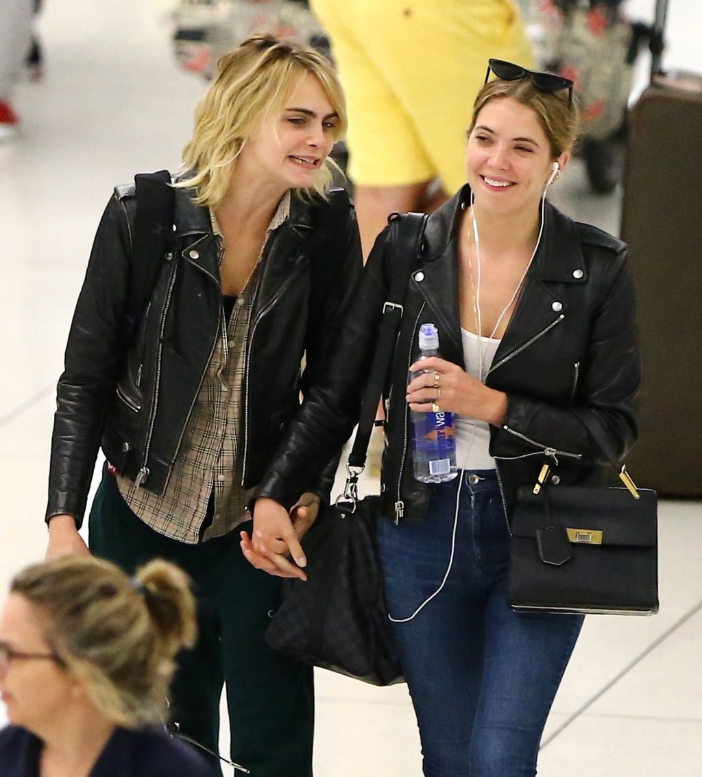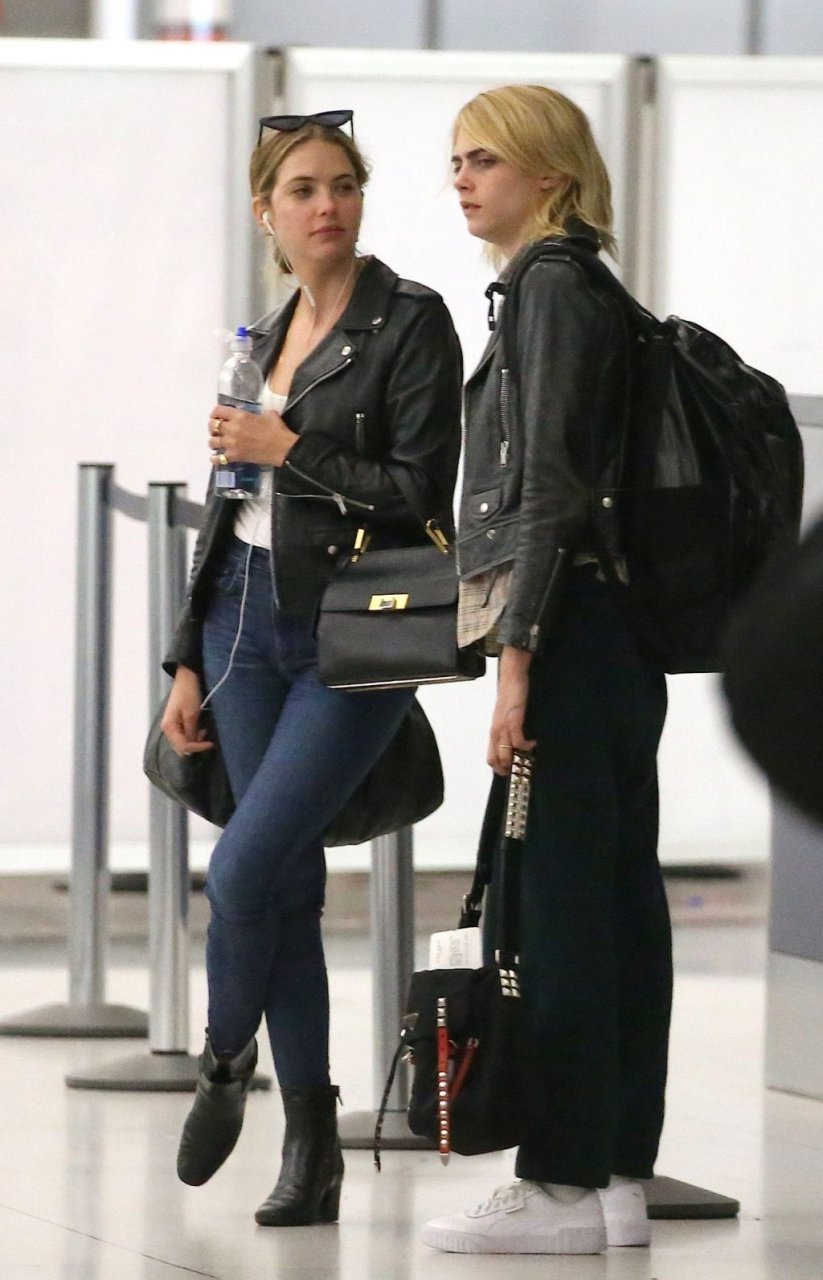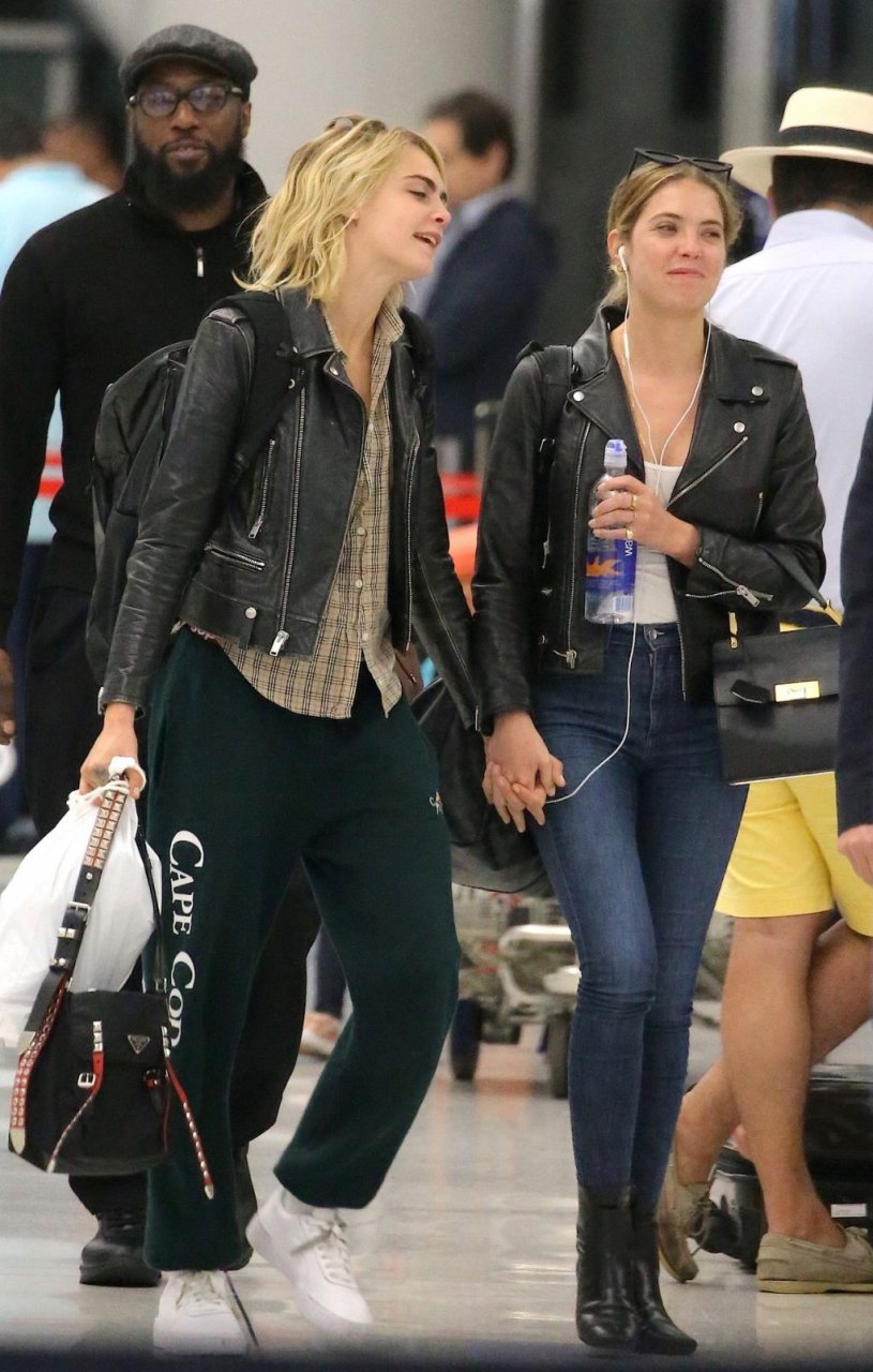 Mira las nuevas fotos de paparazzi de la famosa pareja lesbiana. Cara Delevingne y Ashley Benson fueron vistas en el aeropuerto JFK de Nueva York besándose y abrazándose en la fila de seguridad, 18/06/2019.