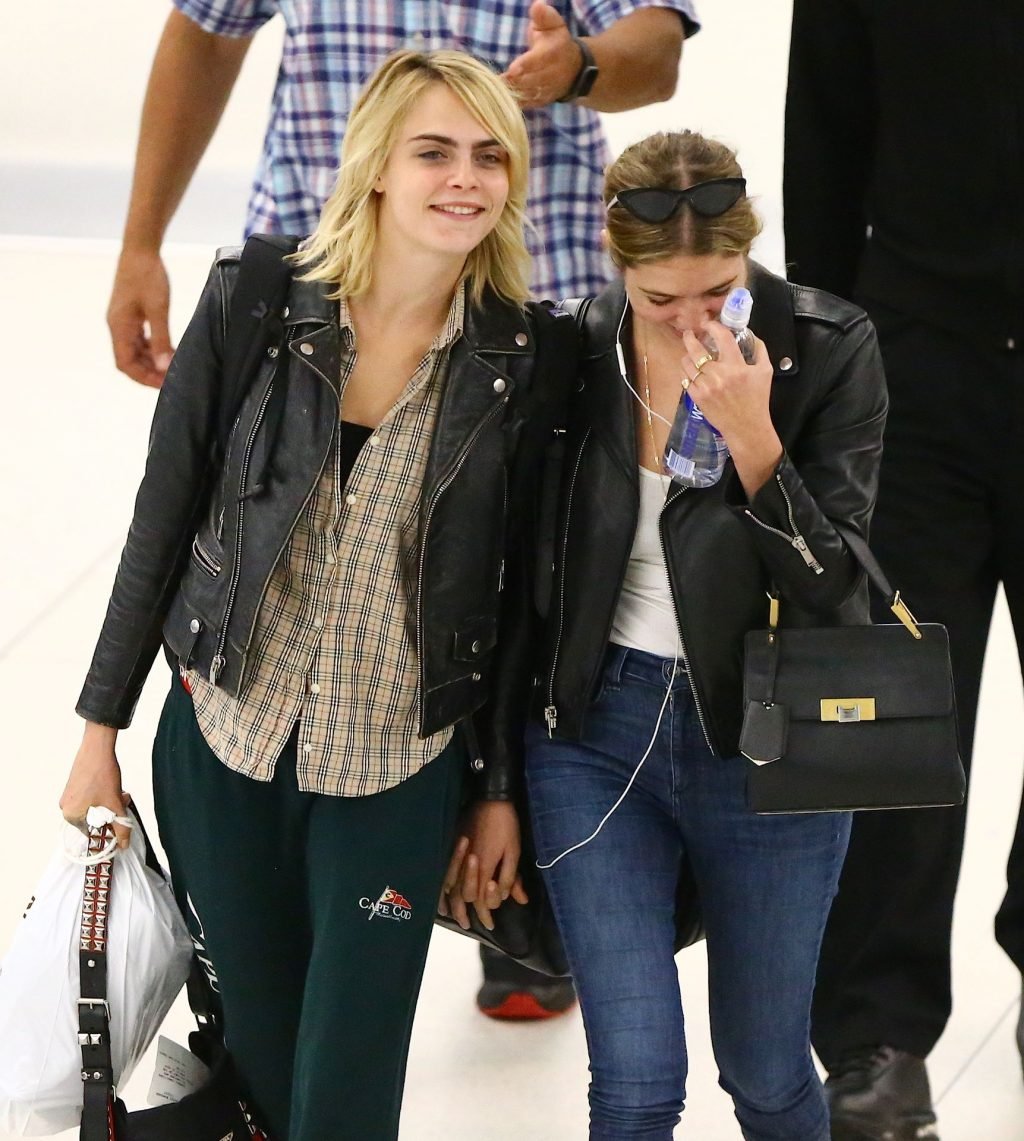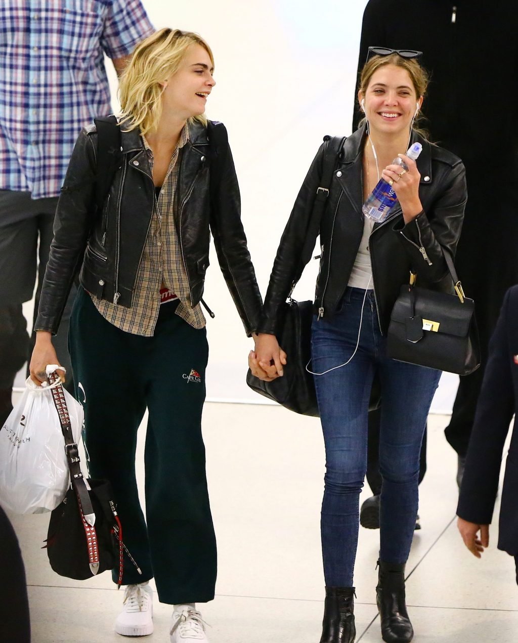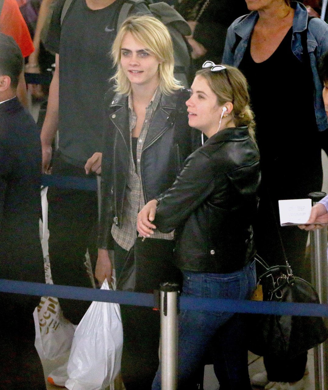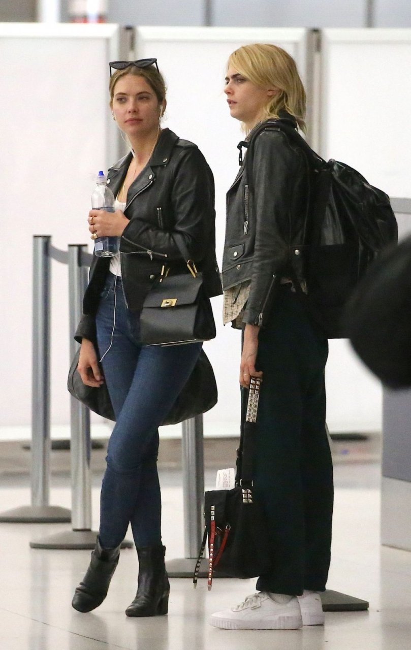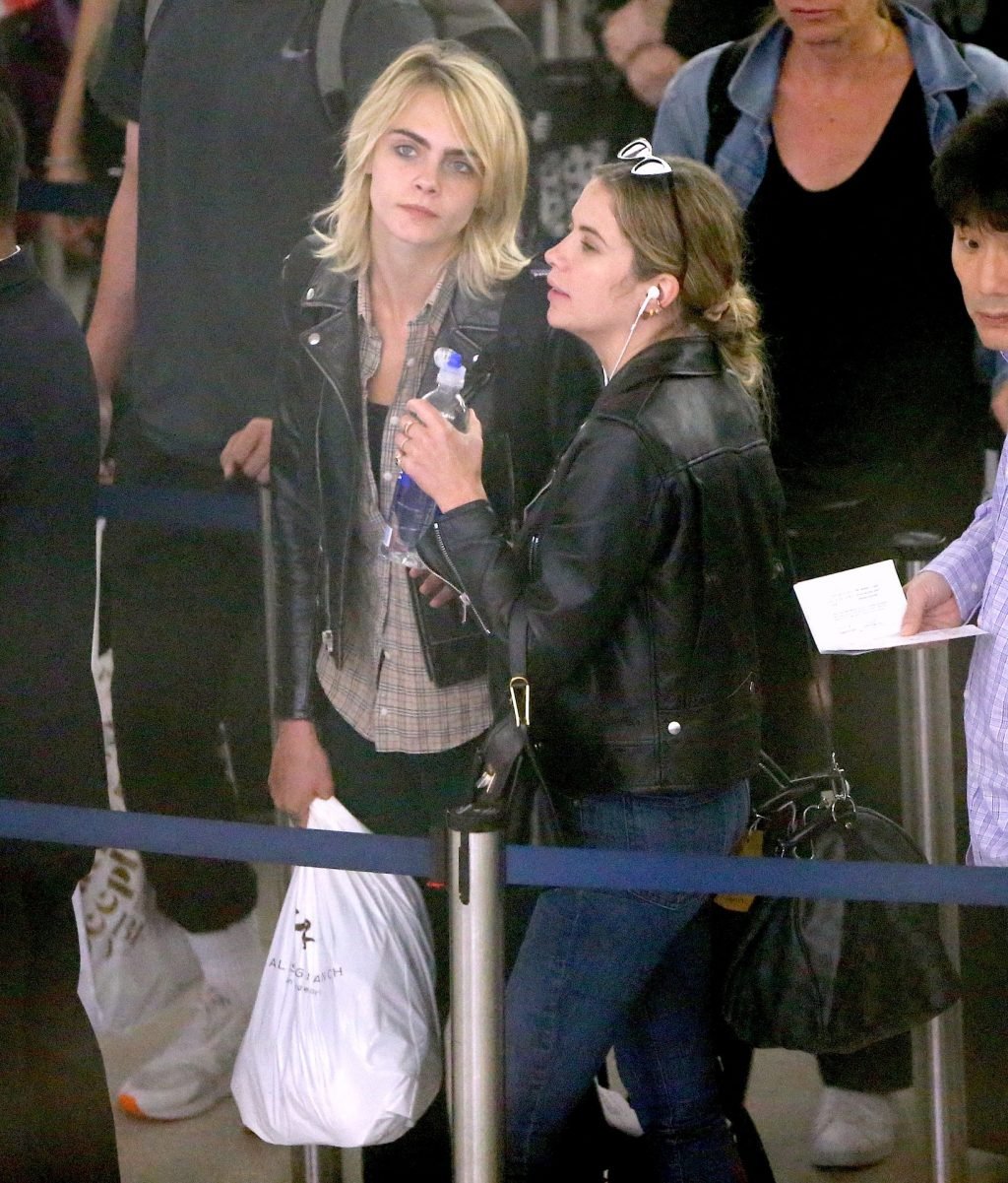 Mira las nuevas fotos de paparazzi de la famosa pareja lesbiana. Cara Delevingne y Ashley Benson fueron vistas en el aeropuerto JFK de Nueva York besándose y abrazándose en la fila de seguridad, 18/06/2019.