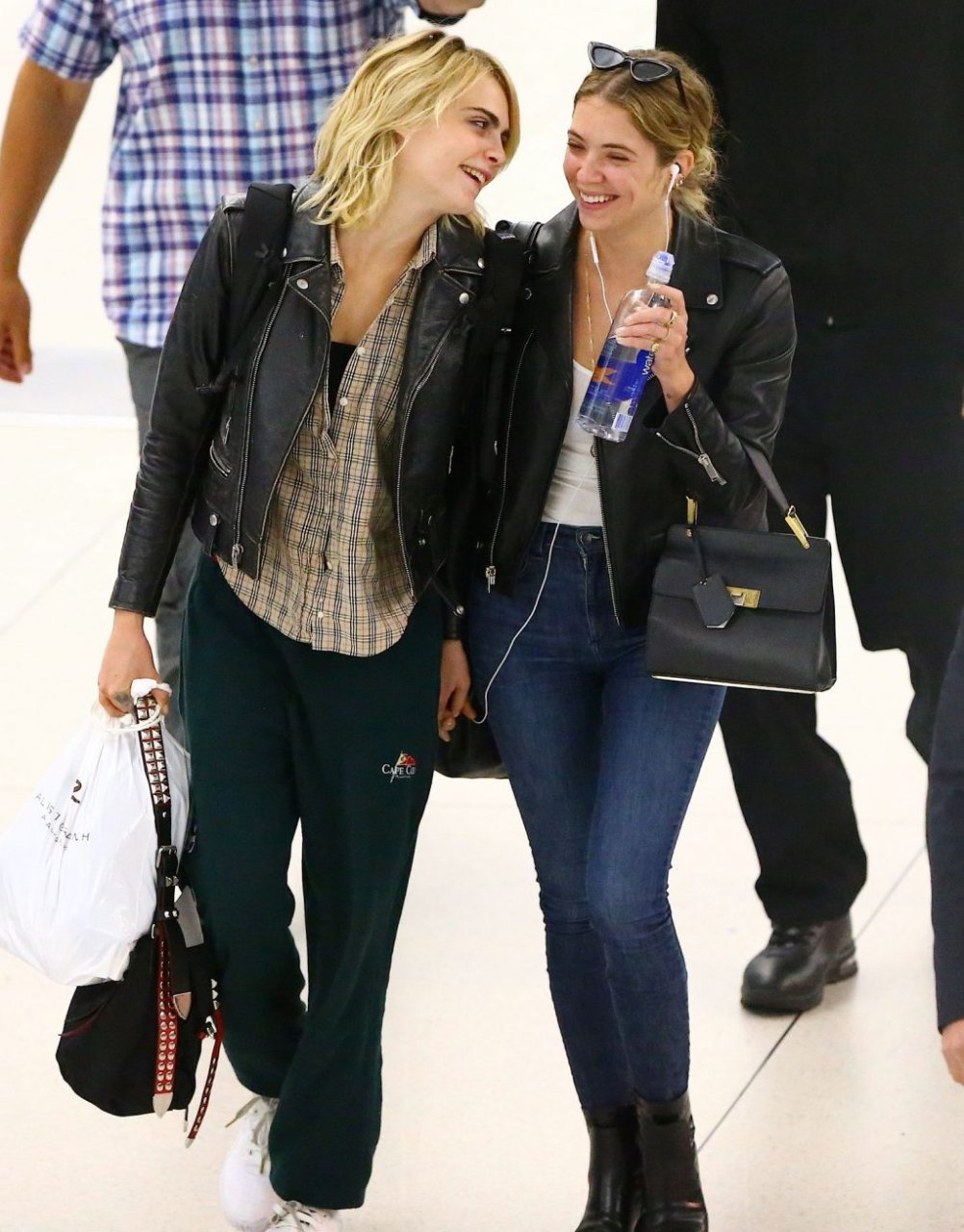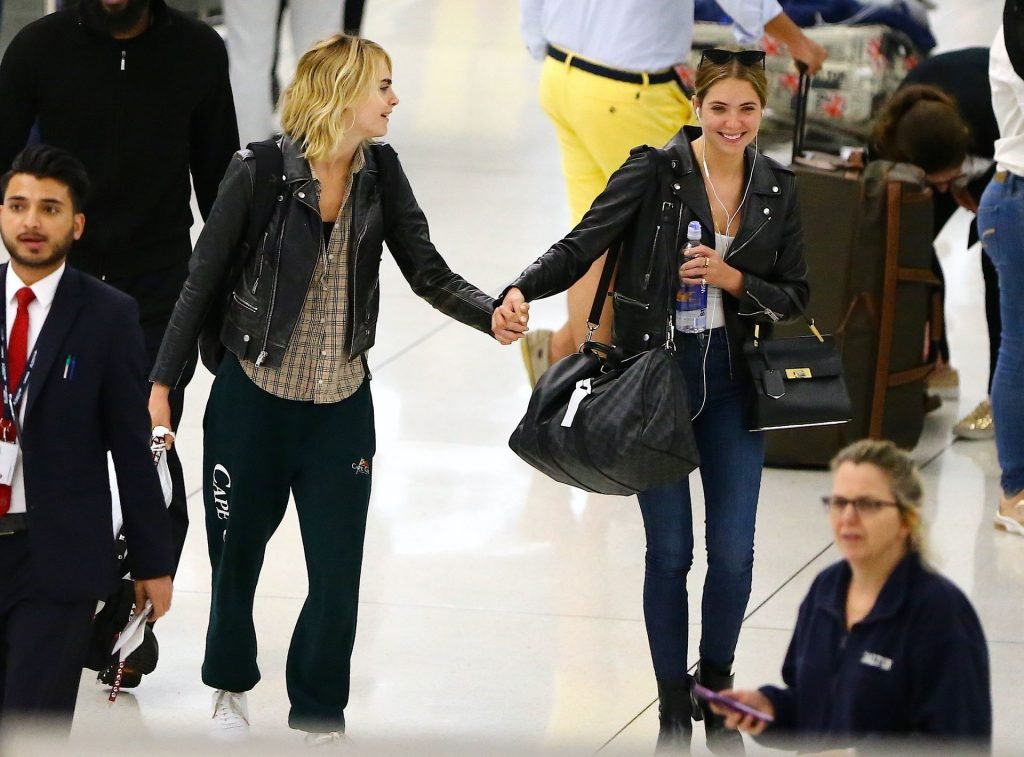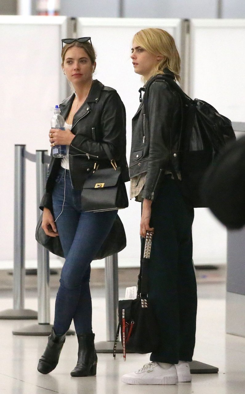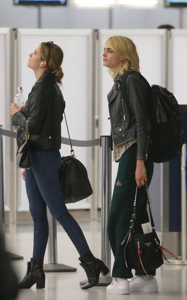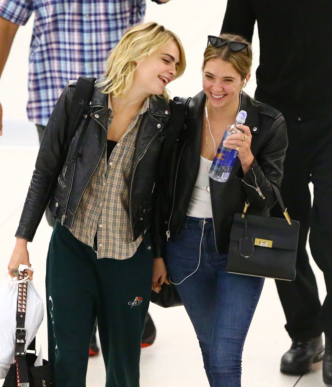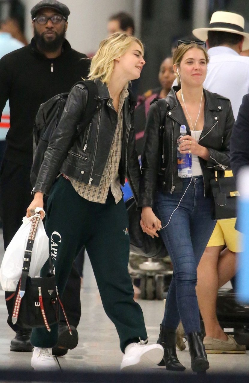 Mira las nuevas fotos de paparazzi de la famosa pareja lesbiana. Cara Delevingne y Ashley Benson fueron vistas en el aeropuerto JFK de Nueva York besándose y abrazándose en la fila de seguridad, 18/06/2019.