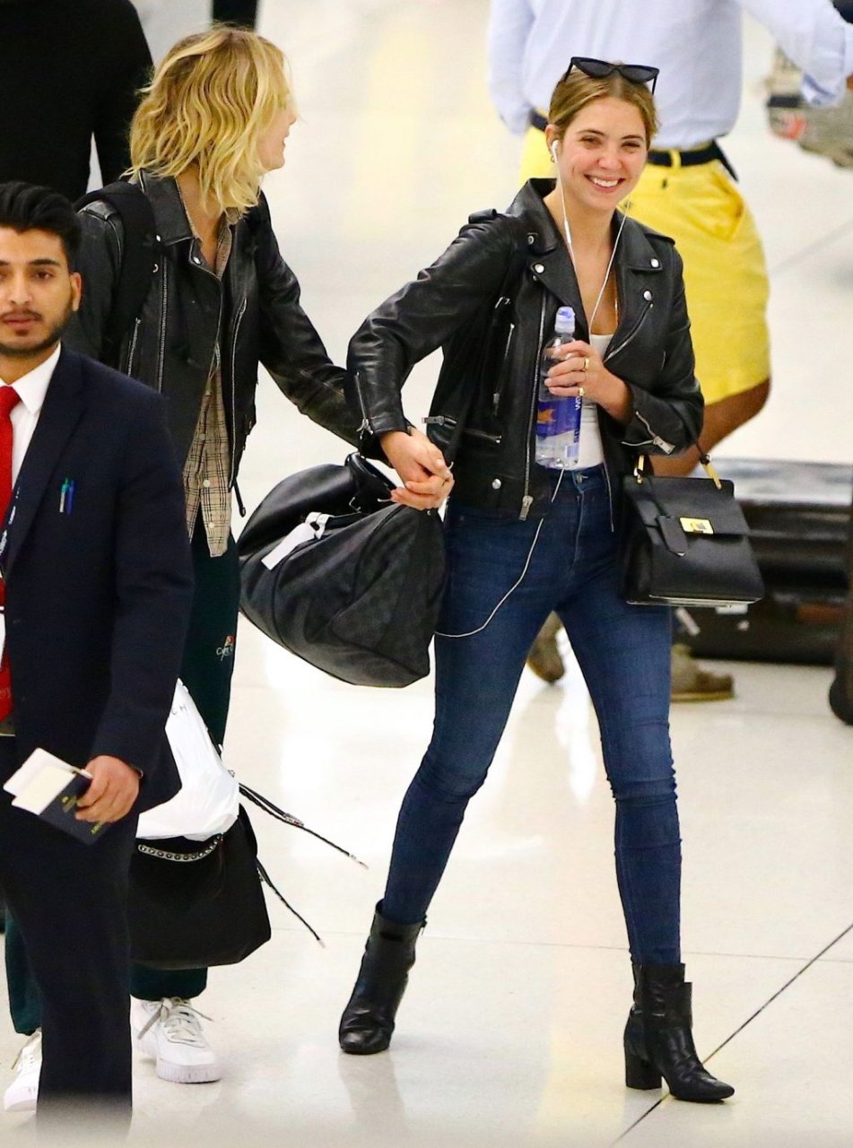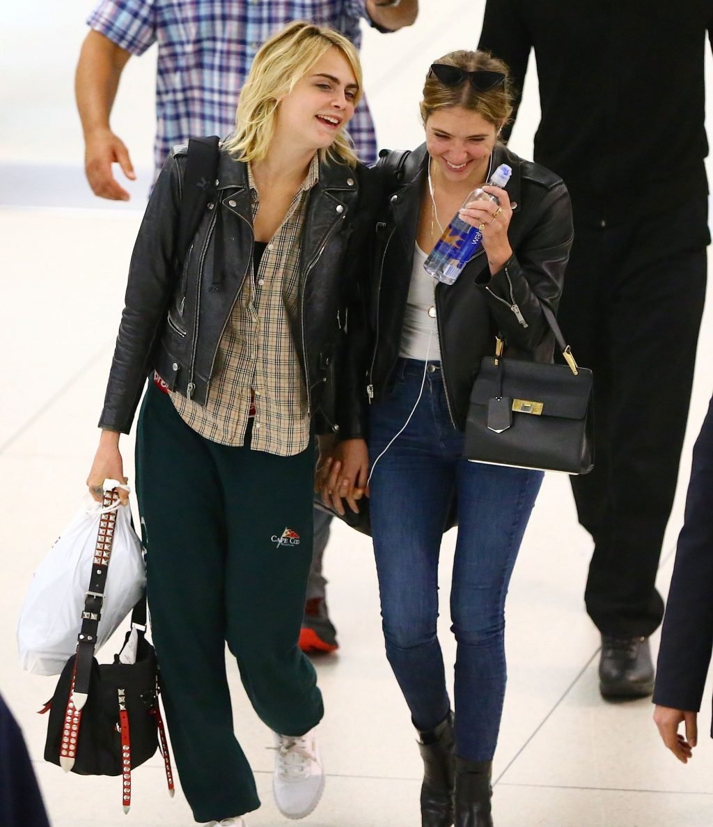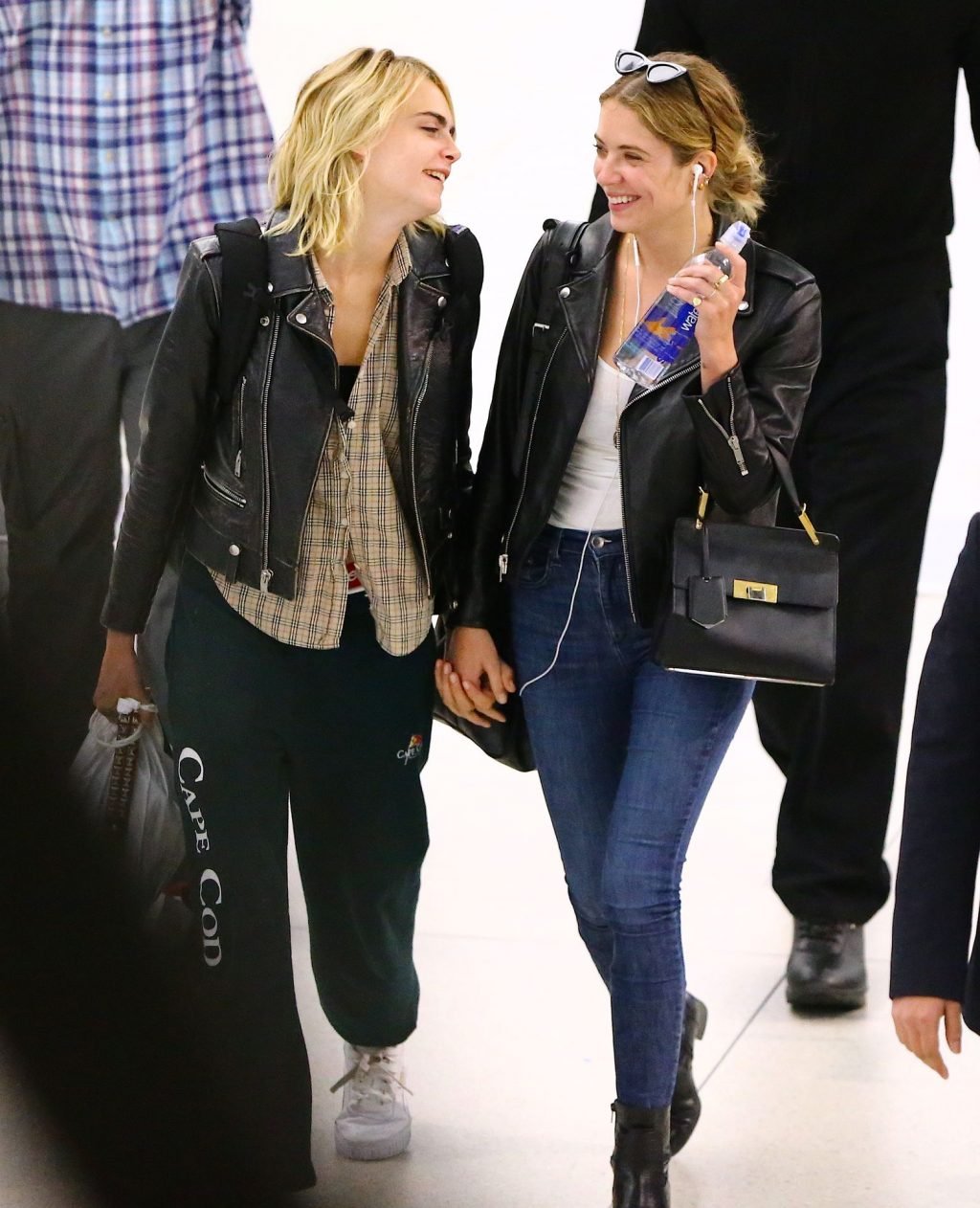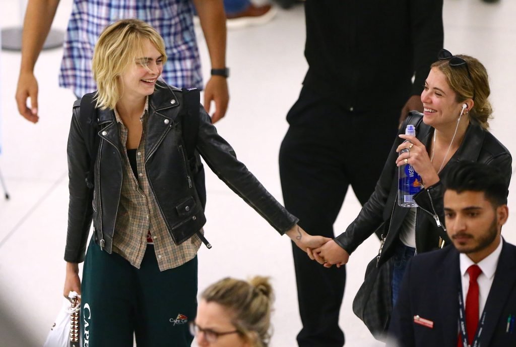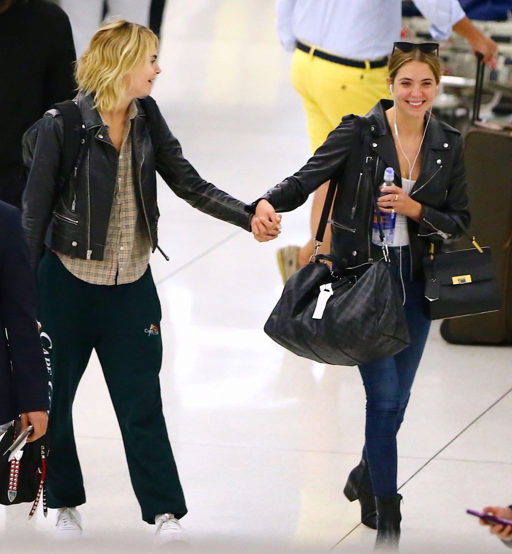 Mira las nuevas fotos de paparazzi de la famosa pareja lesbiana. Cara Delevingne y Ashley Benson fueron vistas en el aeropuerto JFK de Nueva York besándose y abrazándose en la fila de seguridad, 18/06/2019.