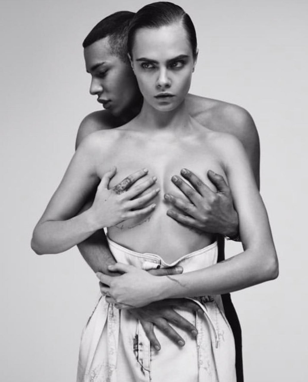 La modelo y actriz británica, de 26 años, se reclina frente a una enorme “B” para la campaña de primavera 2019 de Balmain. En otra imagen, Cara canaliza a Janet Jackson mientras el director creativo y diseñador de Balmain, Olivier Rousteing, cubre sus pechos desnudos con sus manos.