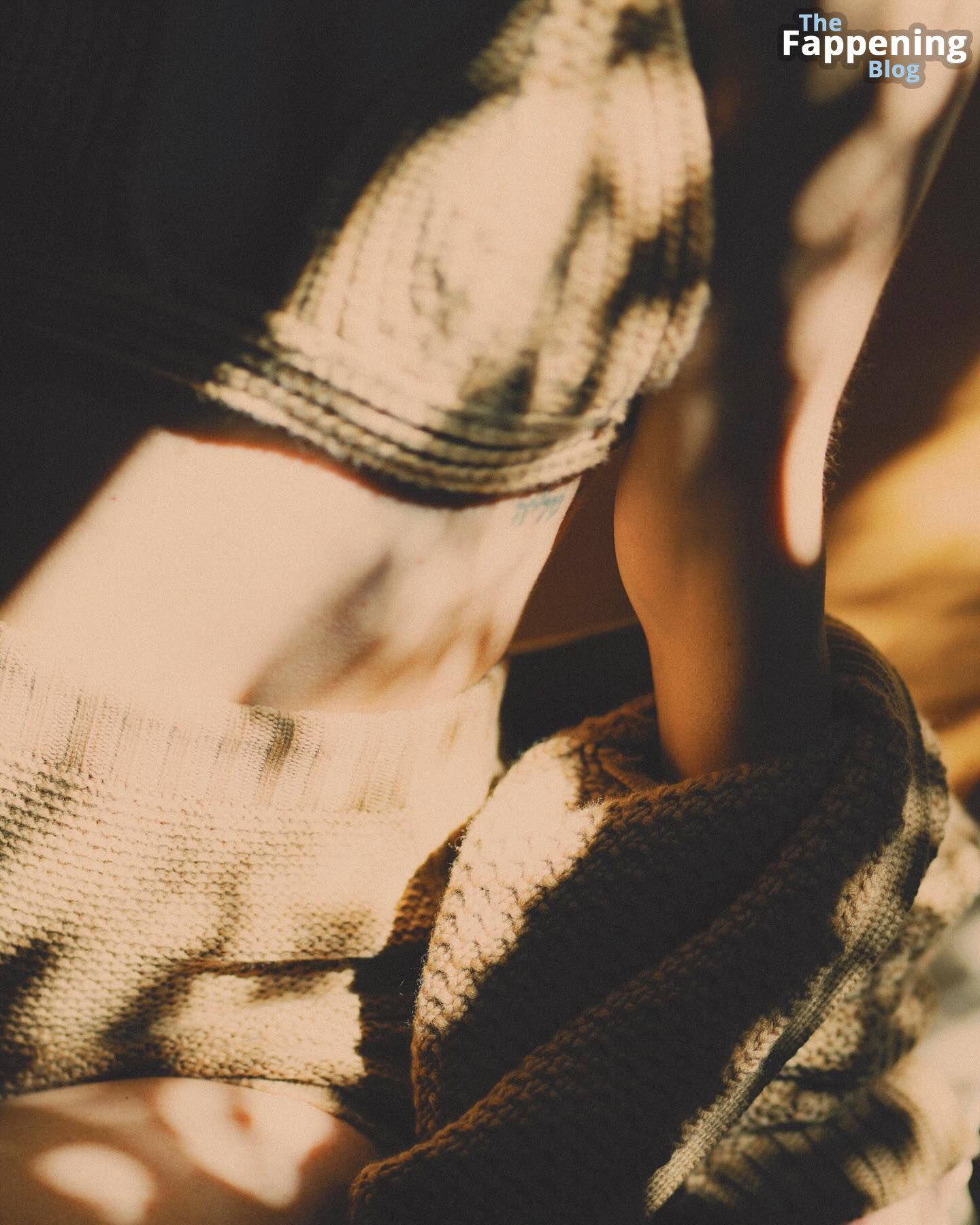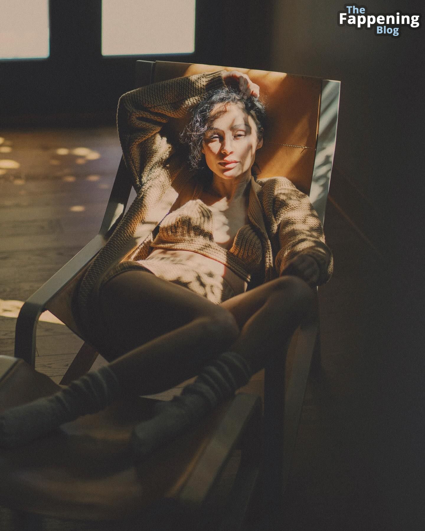 La actriz Cara Santana luce un nuevo y acogedor conjunto de casa de Max Mara. Lleva unos diminutos shorts de punto y un top a juego que parece más un bikini, rematado con una cálida capa. Este conjunto tiene un corte único que definitivamente resalta los atributos de Cara, y la fotógrafa Cibelle Levi no perdió la oportunidad de capturar esos detalles.