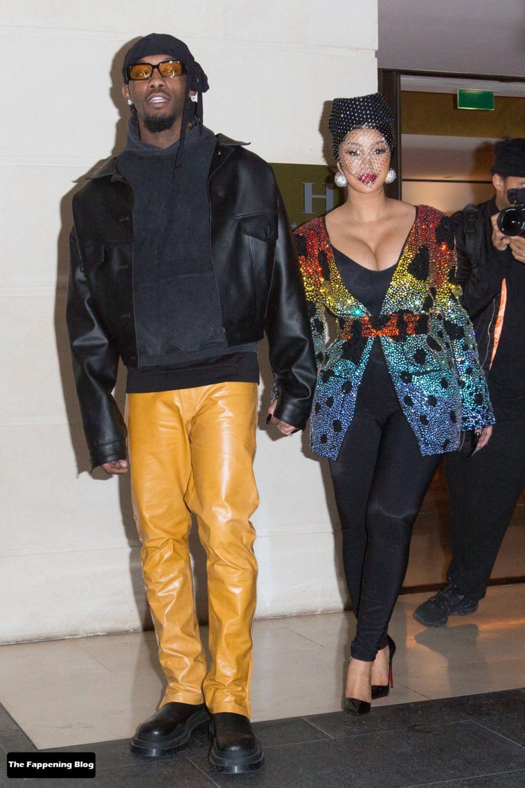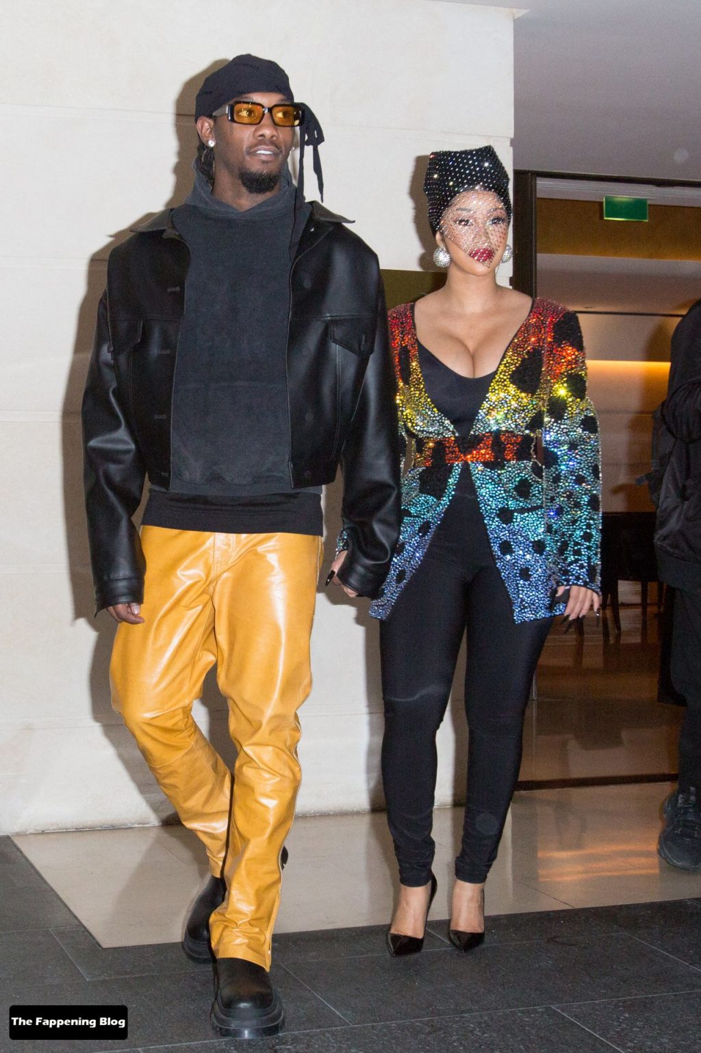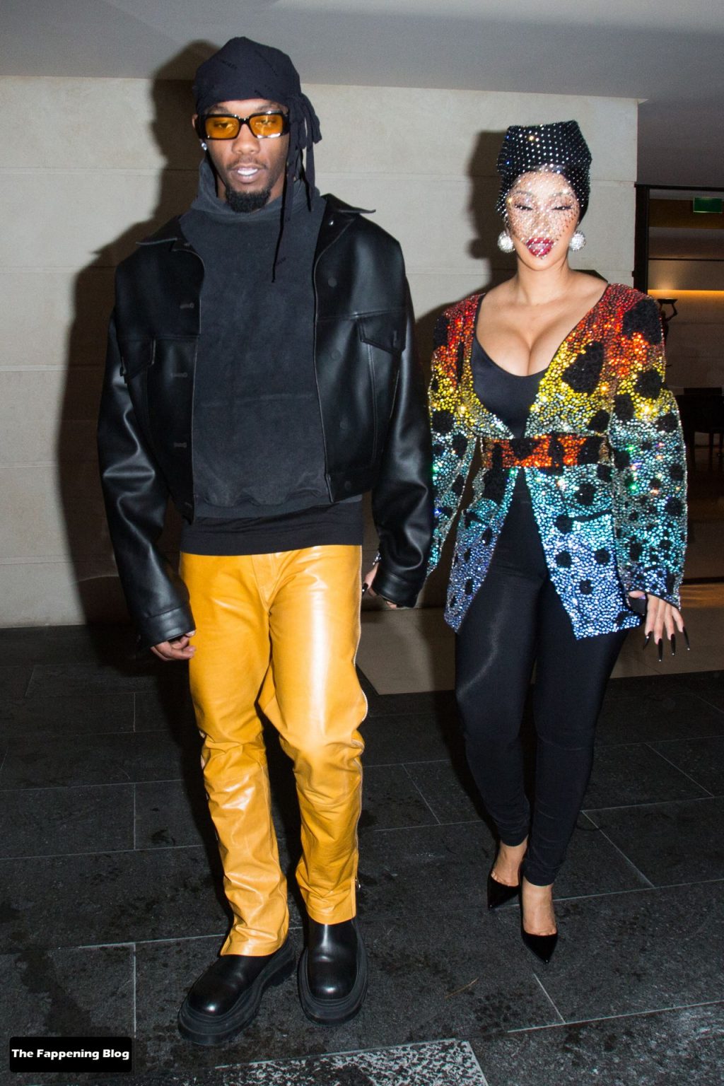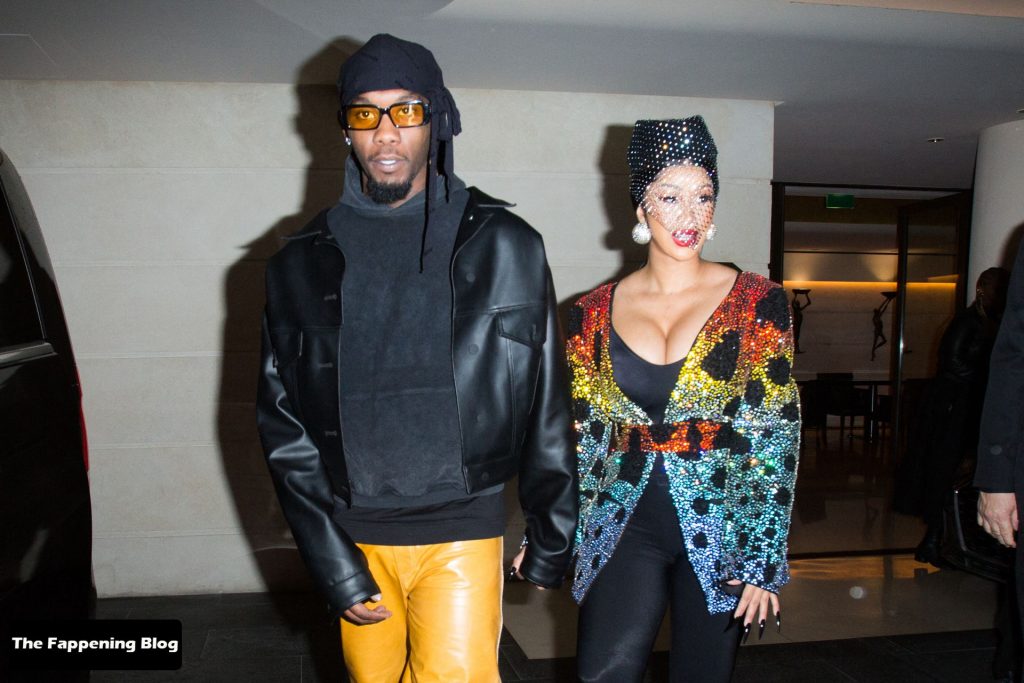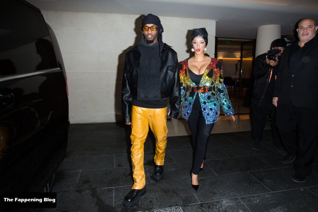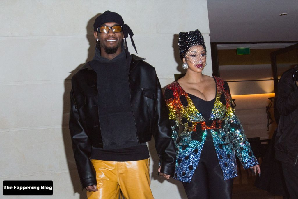 Offset y su novia Cardi B son vistos saliendo de su hotel hacia una fiesta durante la Semana de la Moda de París, 02/10/2021.