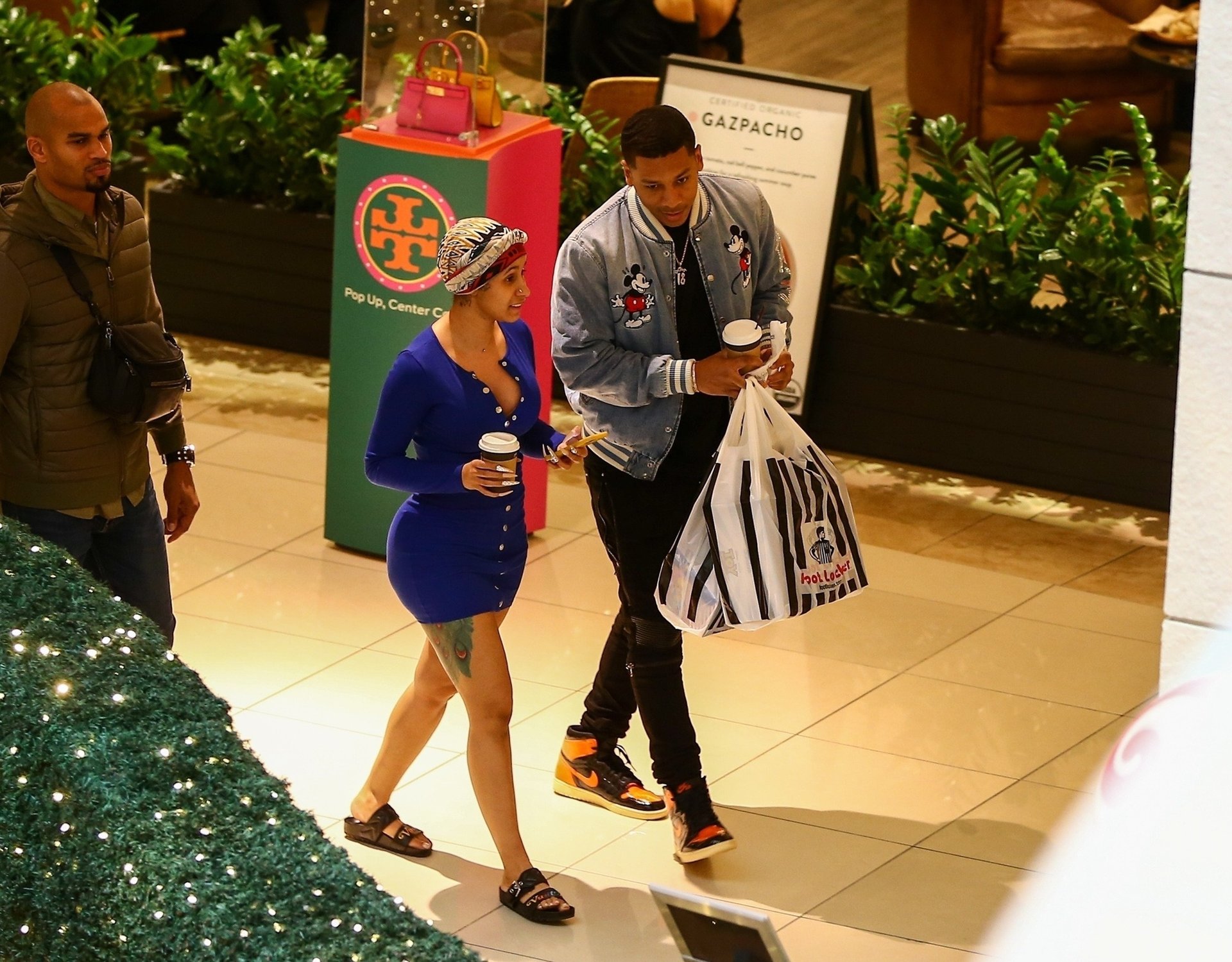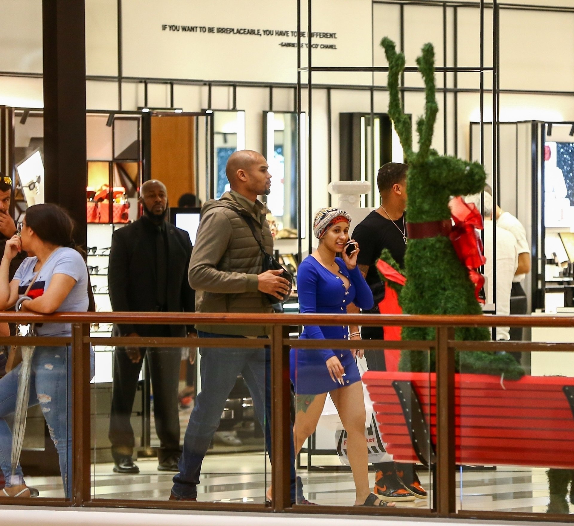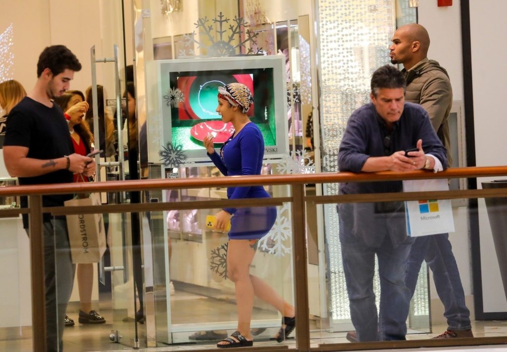 Cardi hizo varias paradas, incluyendo Louis Vuitton, Ferrari, Foot Locker, Gucci, una tienda de ropa para bebés y una panadería, atrayendo a multitudes de espectadores que esperaban verla. Mientras compraba, también se la pudo ver hablando por su teléfono celular mientras estaba escoltada por su equipo de seguridad.