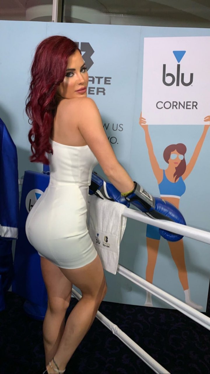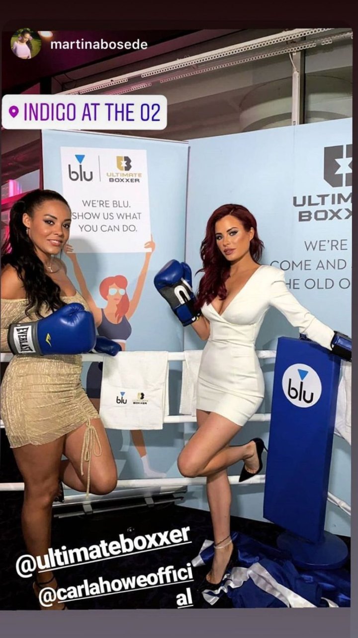 Carla Howe asiste a Ultimate Boxxer 5 en el O2 de Londres, 20/09/2019. La impresionante modelo inglesa mostró su escote, vistiendo un vestido blanco ajustado.