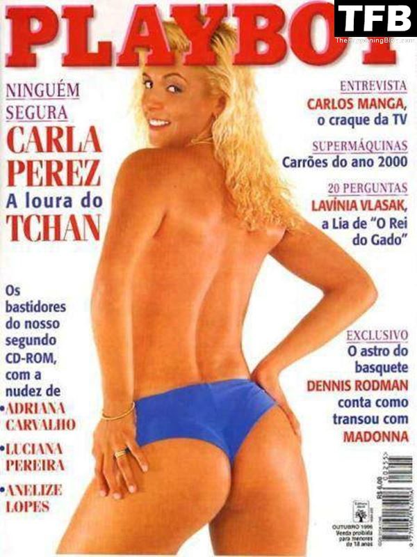 Carla Perez muestra sus tetas desnudas, trasero y vagina en las sesiones de fotos para Playboy.