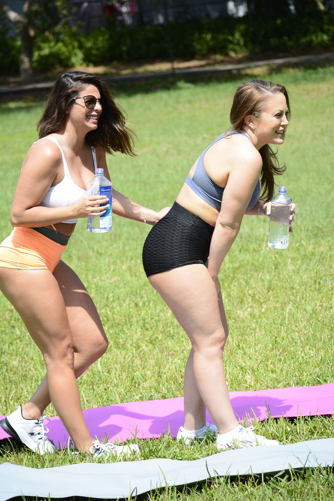 Con la orden de quedarse en casa levantada en Florida, la estrella de cine para adultos y modelo de Playboy Donna Bella no perdió tiempo en disfrutar un día al sol mientras hacía algunos estiramientos de yoga juguetones con Carmen Valentina, 24/05/2020. Los paparazzi las vieron dirigiéndose a una zona menos concurrida del parque.
