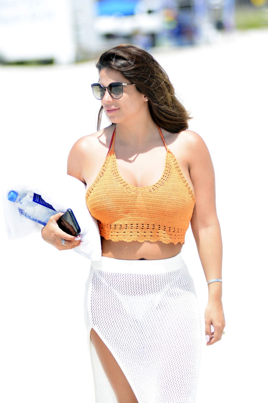 Esa Carmen Valentina (botón rojo) realmente puede llenar un bikini muy bien... putas del porno y todo... no está mal.