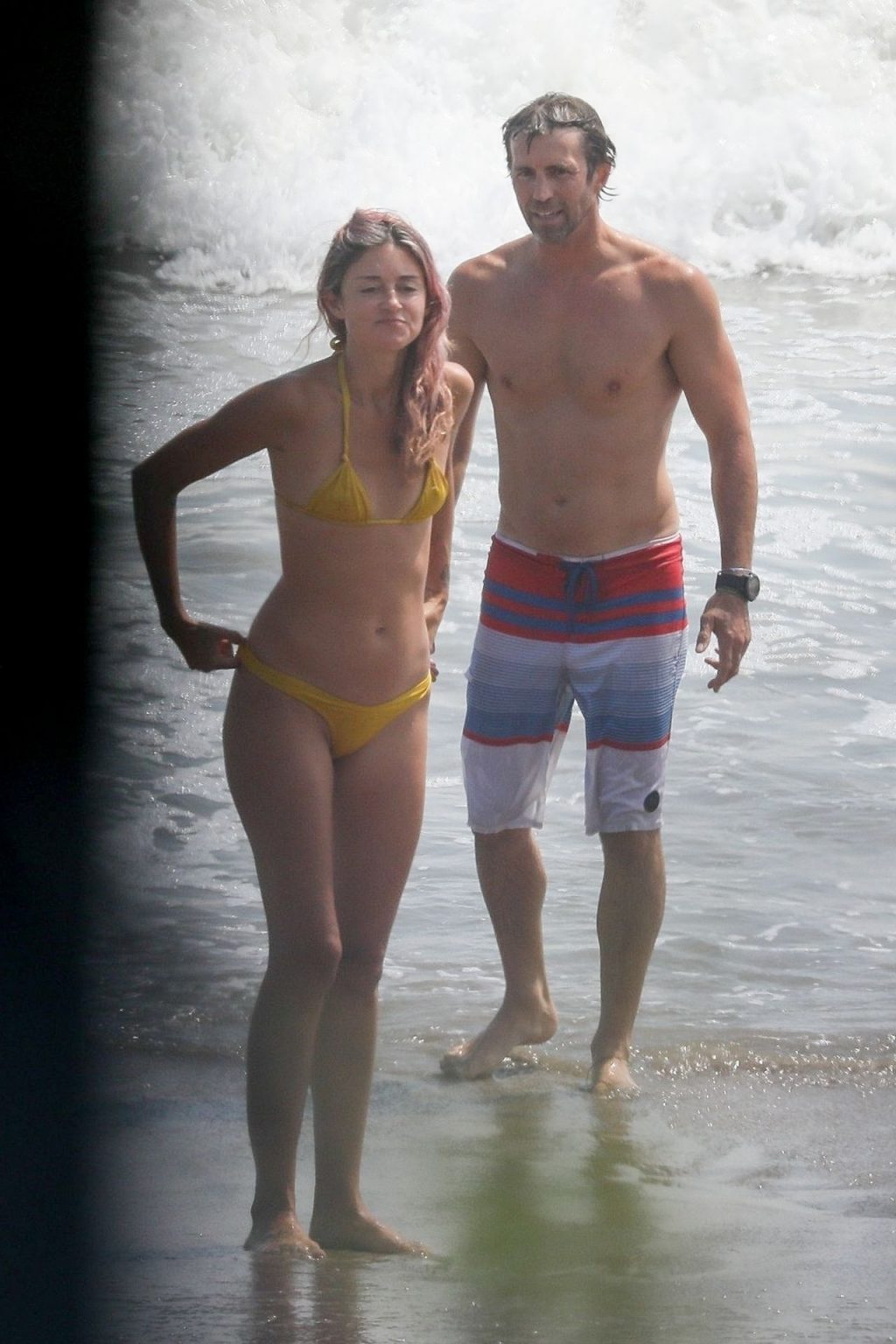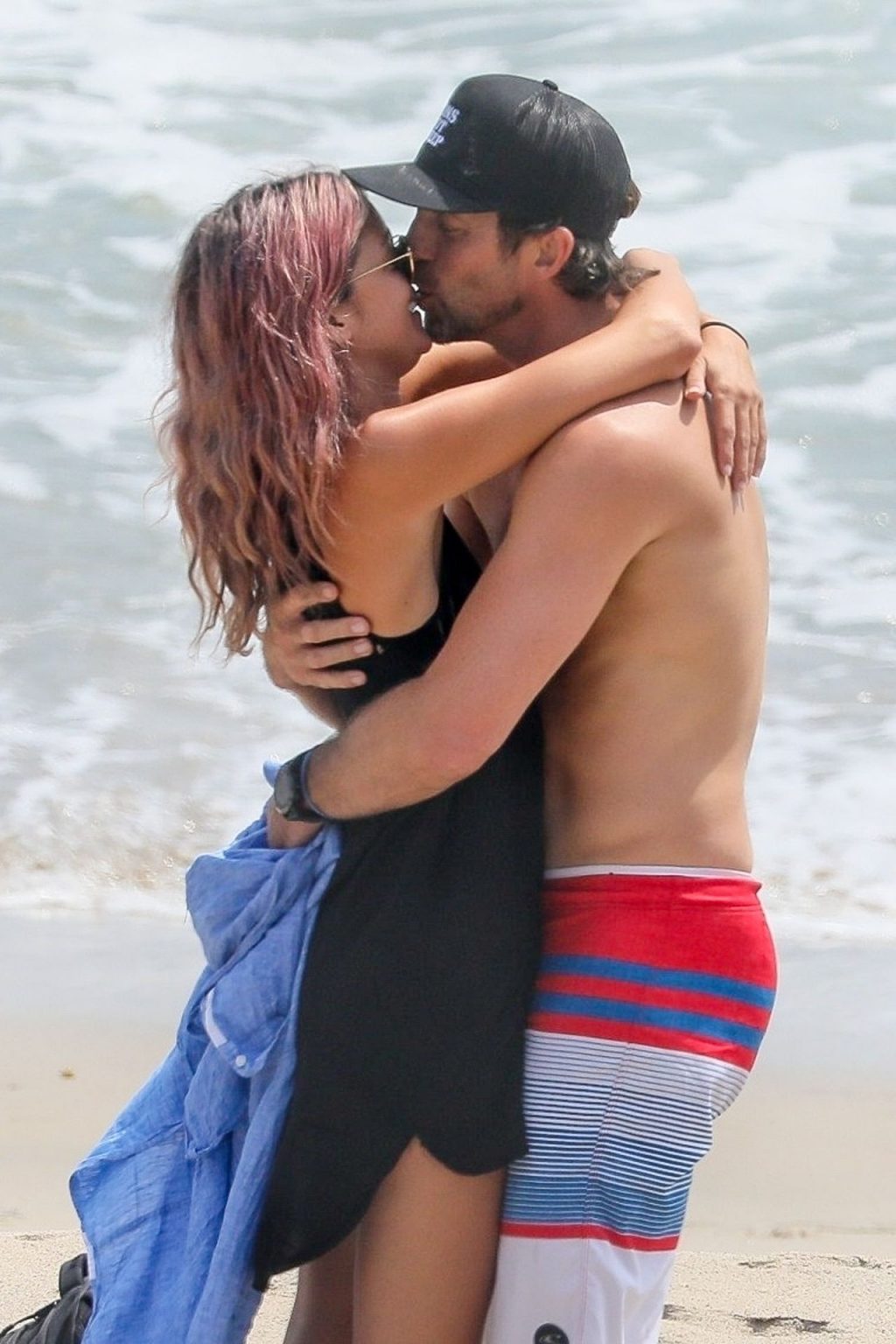 American businesswoman, actress, model, DJ Caroline D’Amore and husband Bobby Alt share some PDA with our camera while enjoying a beach day in Malibu this afternoon (August 2020).