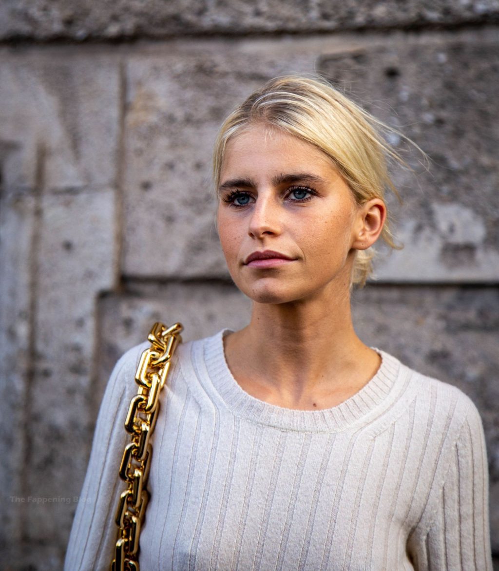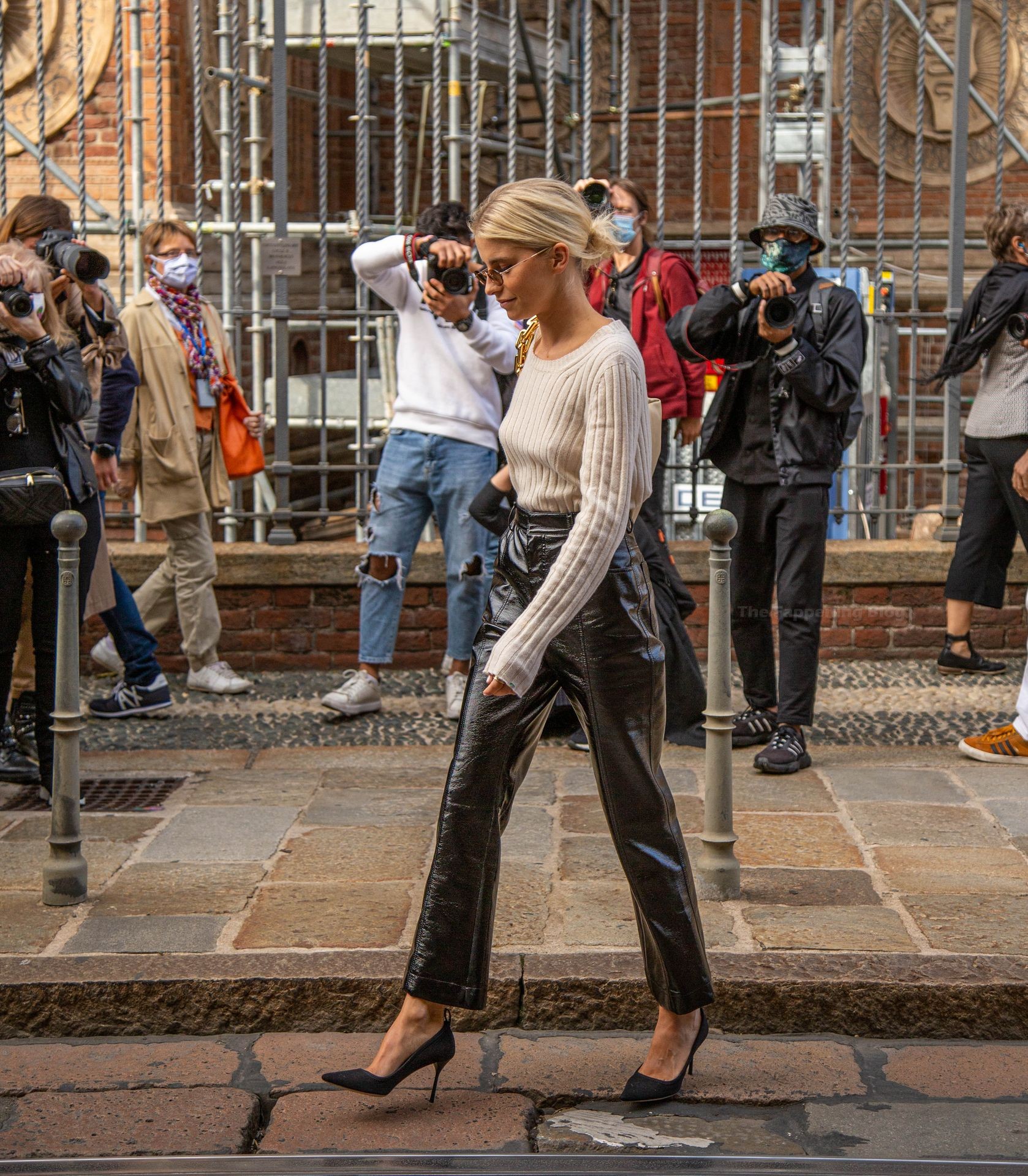 Caroline Daur se ve sin sostén como invitada del Desfile de Moda Philosophy di Lorenzo Serafini en la Semana de la Moda de Milán en Italia, 26/09/2020.