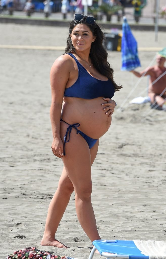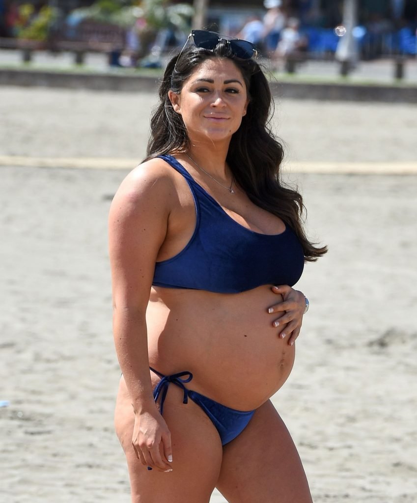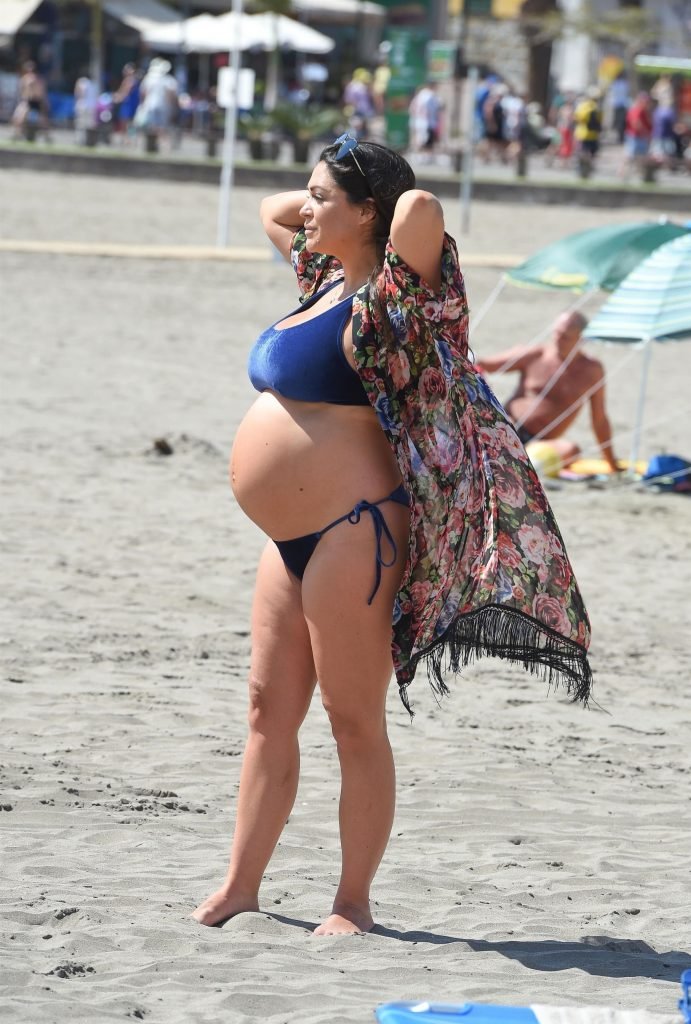Casey Batchelor embarazada se ve en la playa en Lanzarote, 04/09/2018. Casey apareció recientemente en Loose Women donde habló sobre la crítica corporal hacia las mujeres embarazadas. La modelo de 33 años, amante del yoga y estrella de Celebrity Big Brother, muestra con orgullo sus curvas en un bikini azul en la playa.