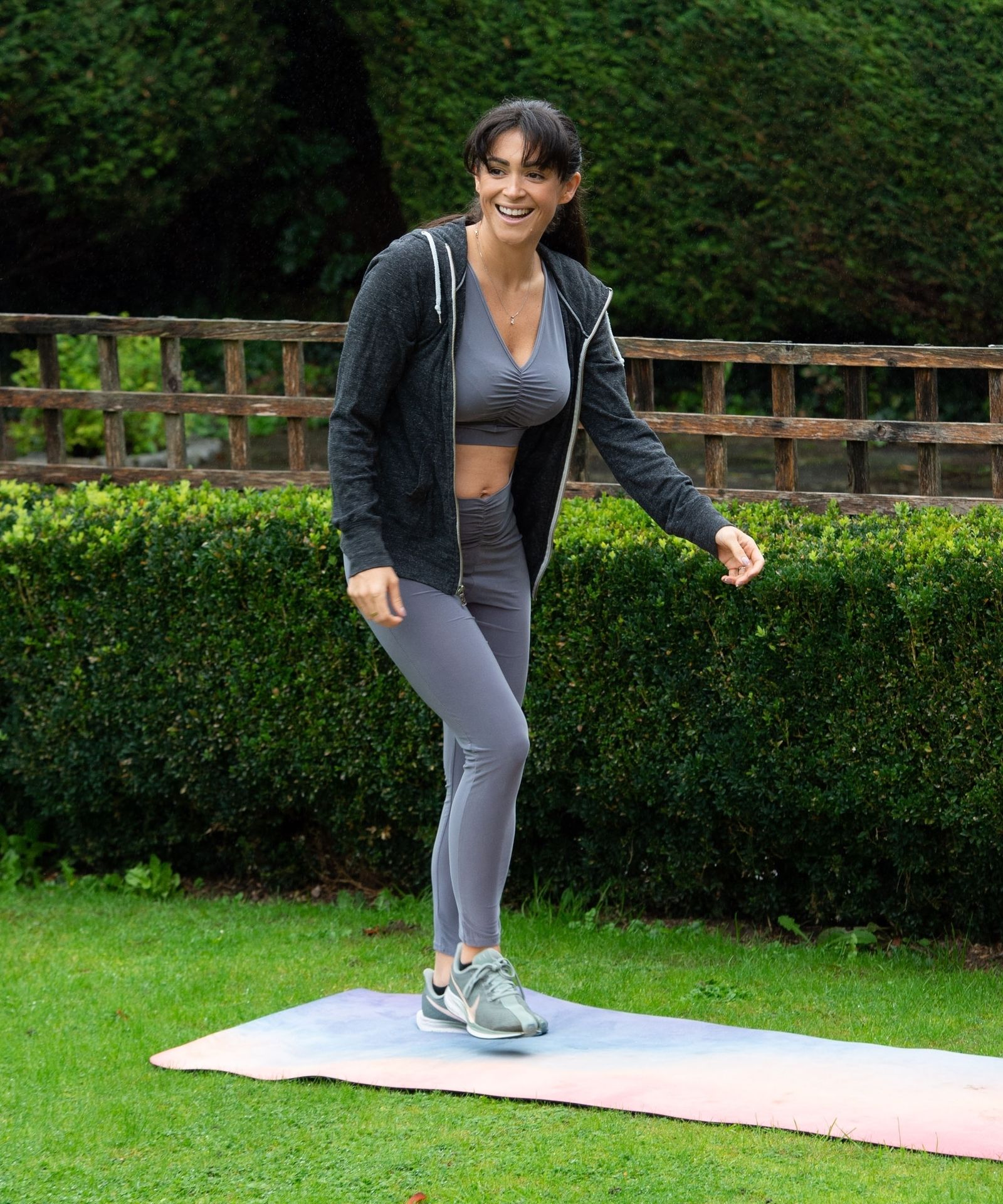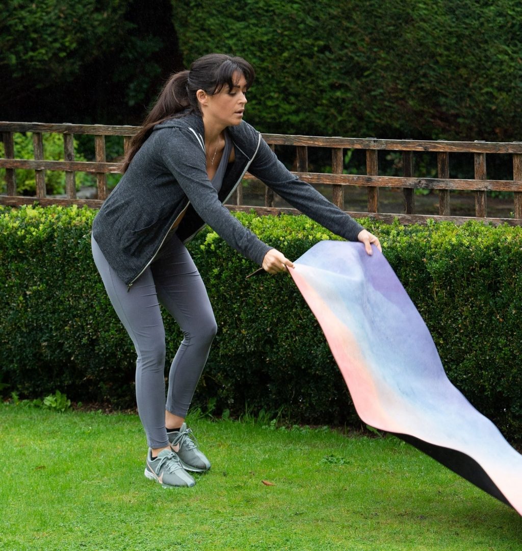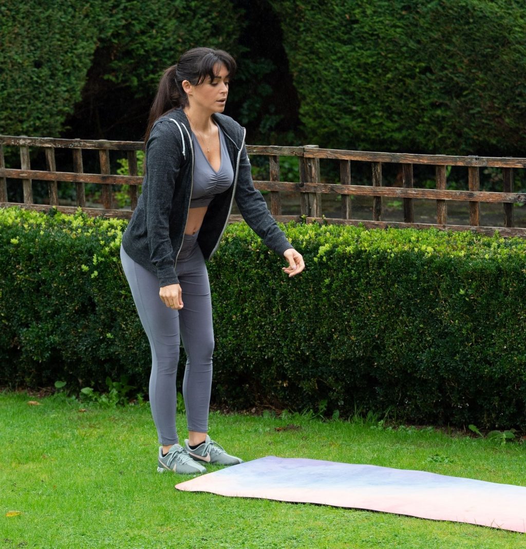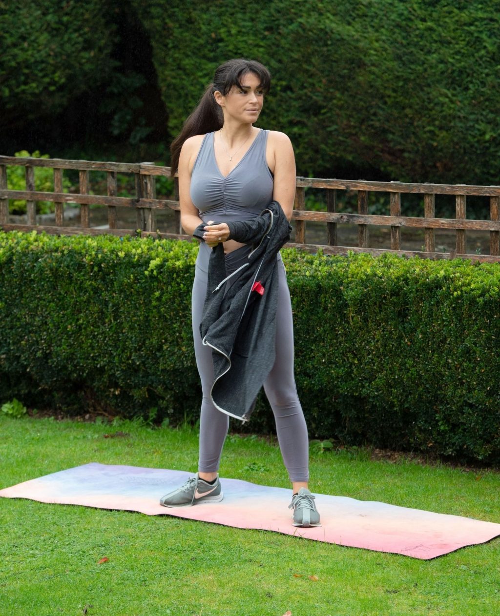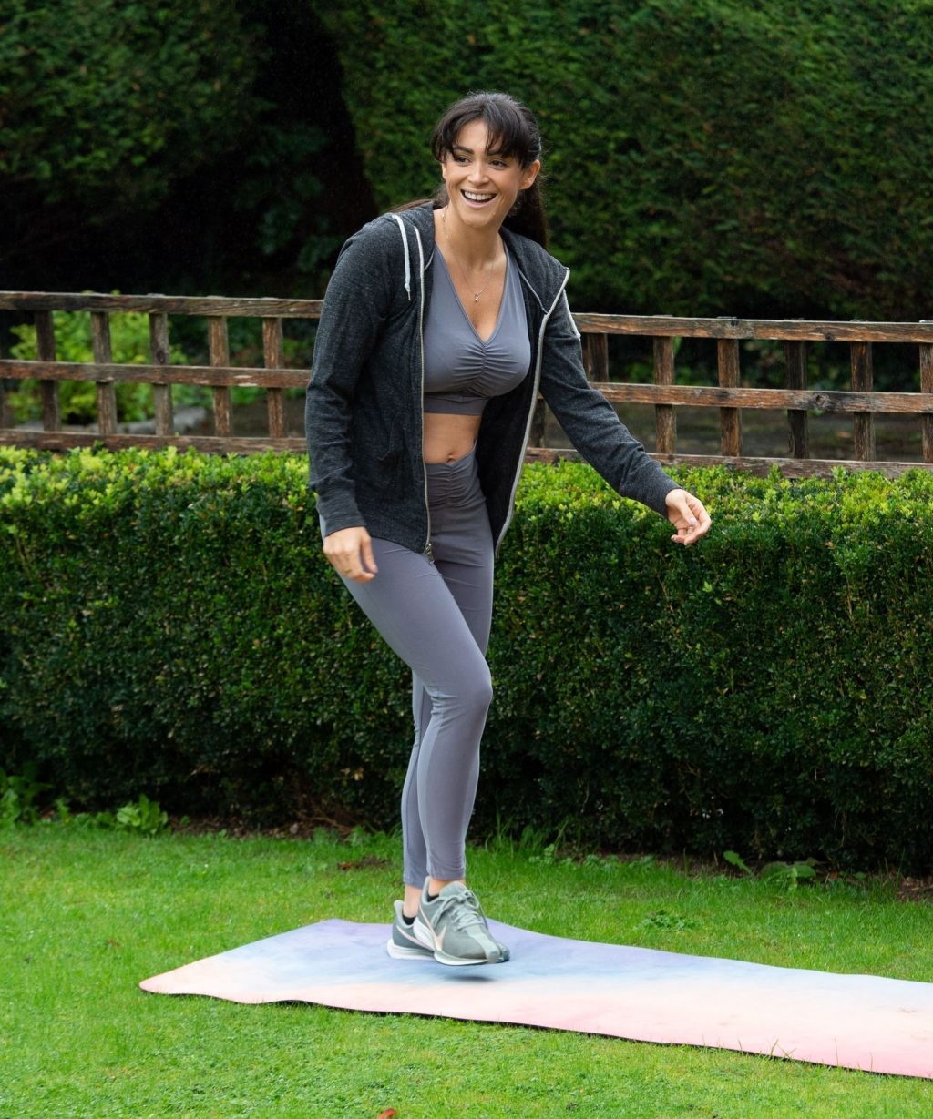 Modelo, estrella de reality y profesora de yoga cualificada, Casey Batchelor muestra sus impresionantes movimientos de yoga mientras hace ejercicio en el norte de Londres esta mañana.