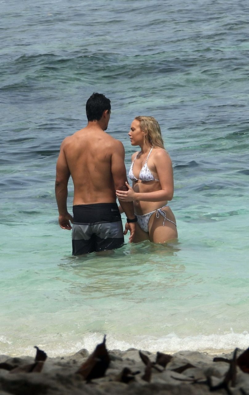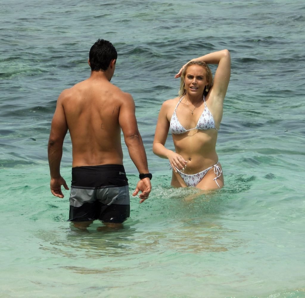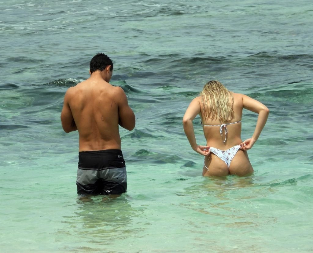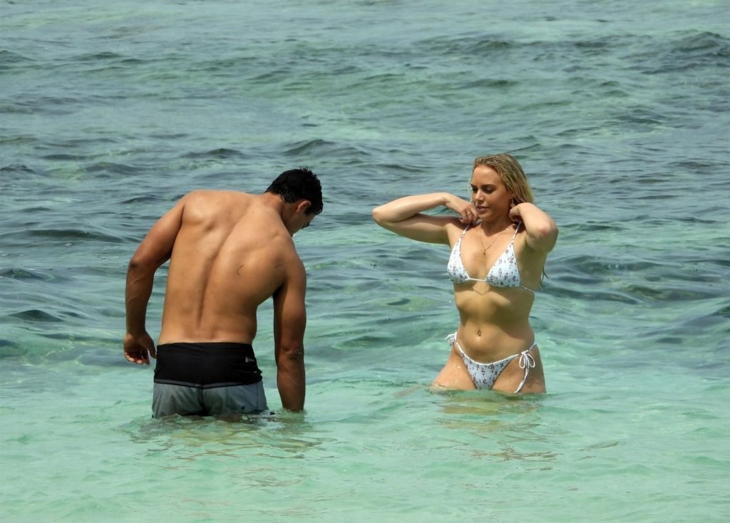 Tyson no podía apartar los ojos de su impresionante novia que fue dejada por Richie Strahan en el programa del domingo por la noche. La pareja se tomó de las manos mientras se dirigían al agua y Cass ajustó su bikini mientras disfrutaban de un baño. Posaron para una foto tomada por un amigo en el agua y, después, la pareja y su séquito almorzaron en un café cercano antes de que Tyson y Cass se fueran en un scooter.