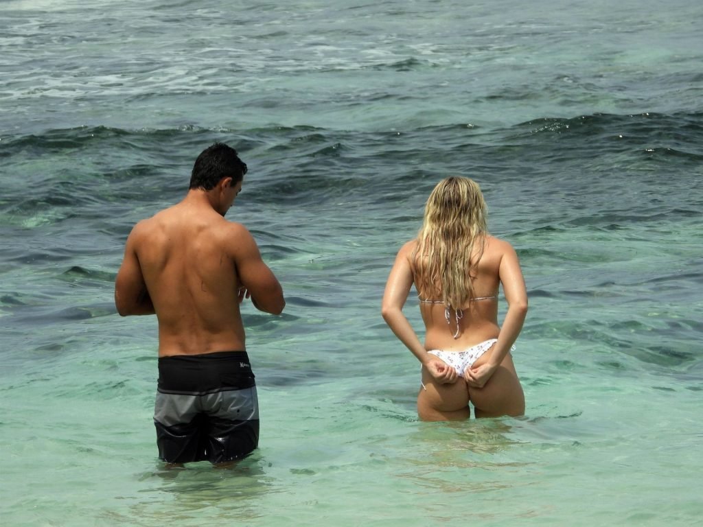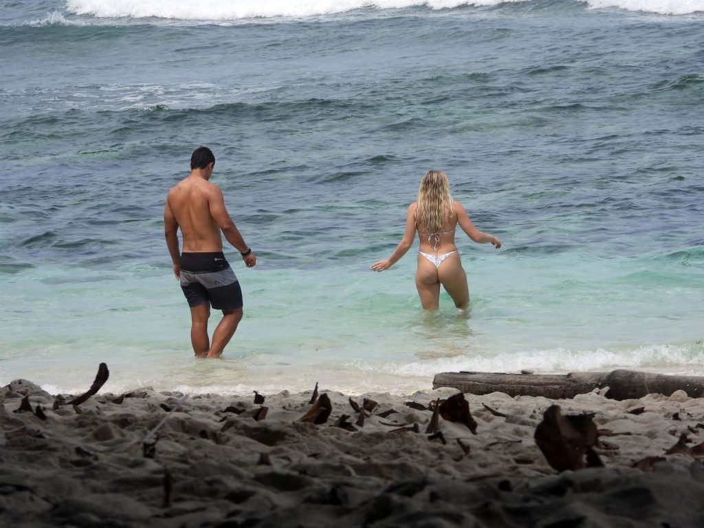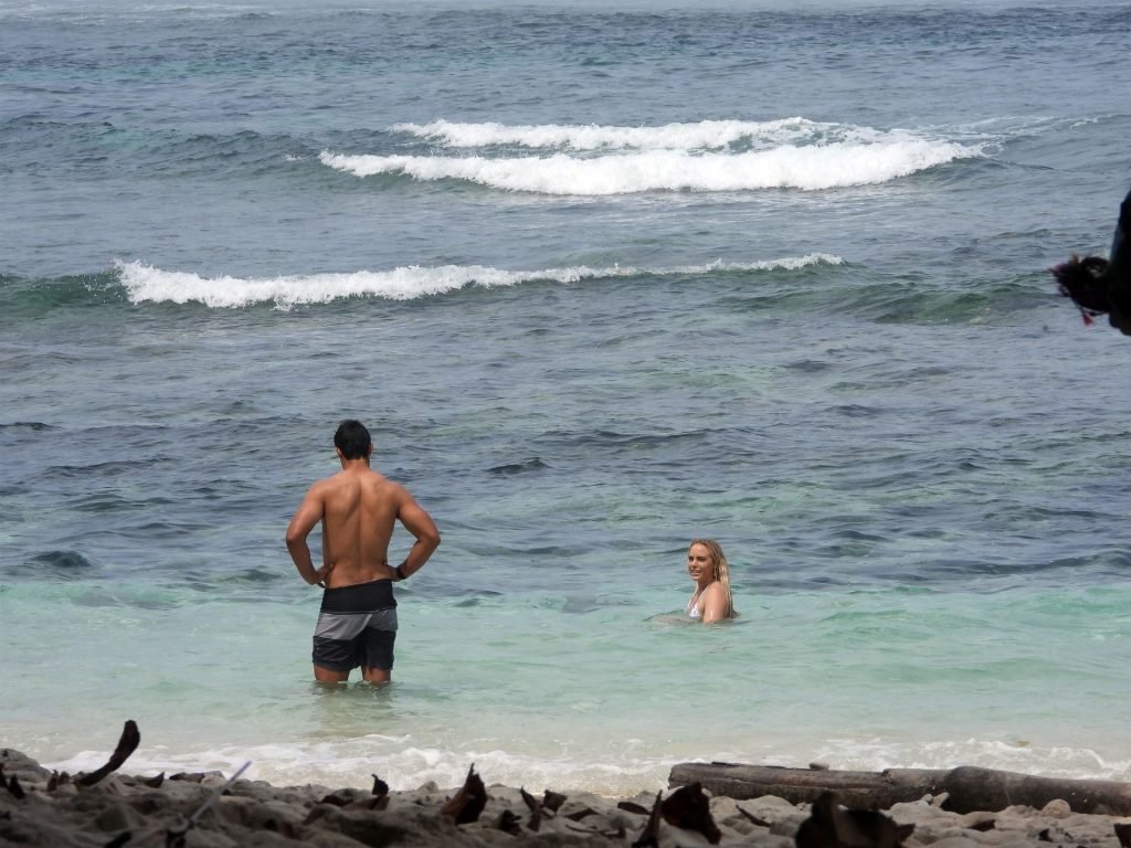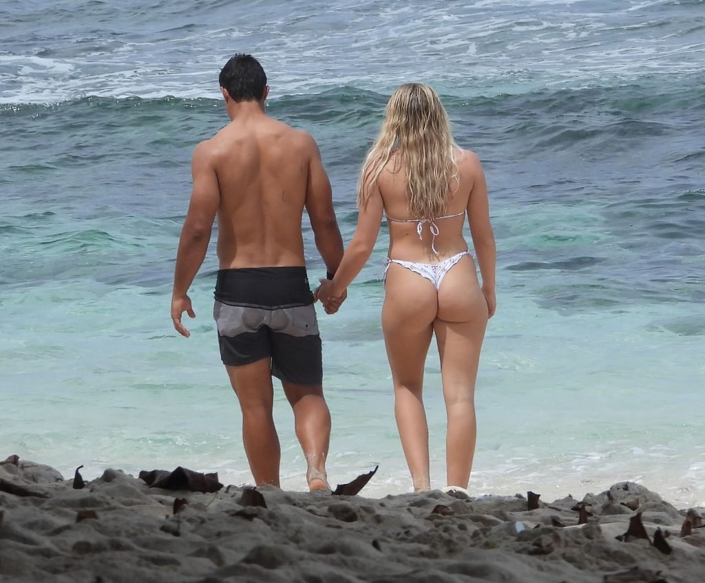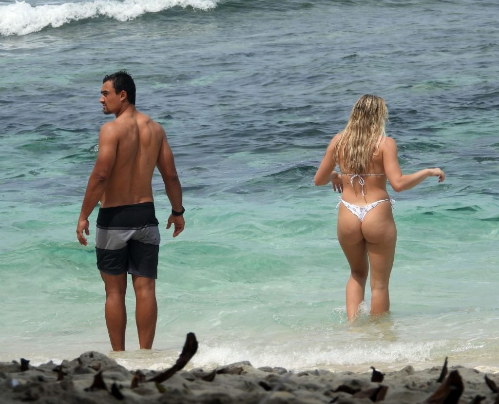 Tyson no podía apartar los ojos de su impresionante novia que fue dejada por Richie Strahan en el programa del domingo por la noche. La pareja se tomó de las manos mientras se dirigían al agua y Cass ajustó su bikini mientras disfrutaban de un baño. Posaron para una foto tomada por un amigo en el agua y, después, la pareja y su séquito almorzaron en un café cercano antes de que Tyson y Cass se fueran en un scooter.