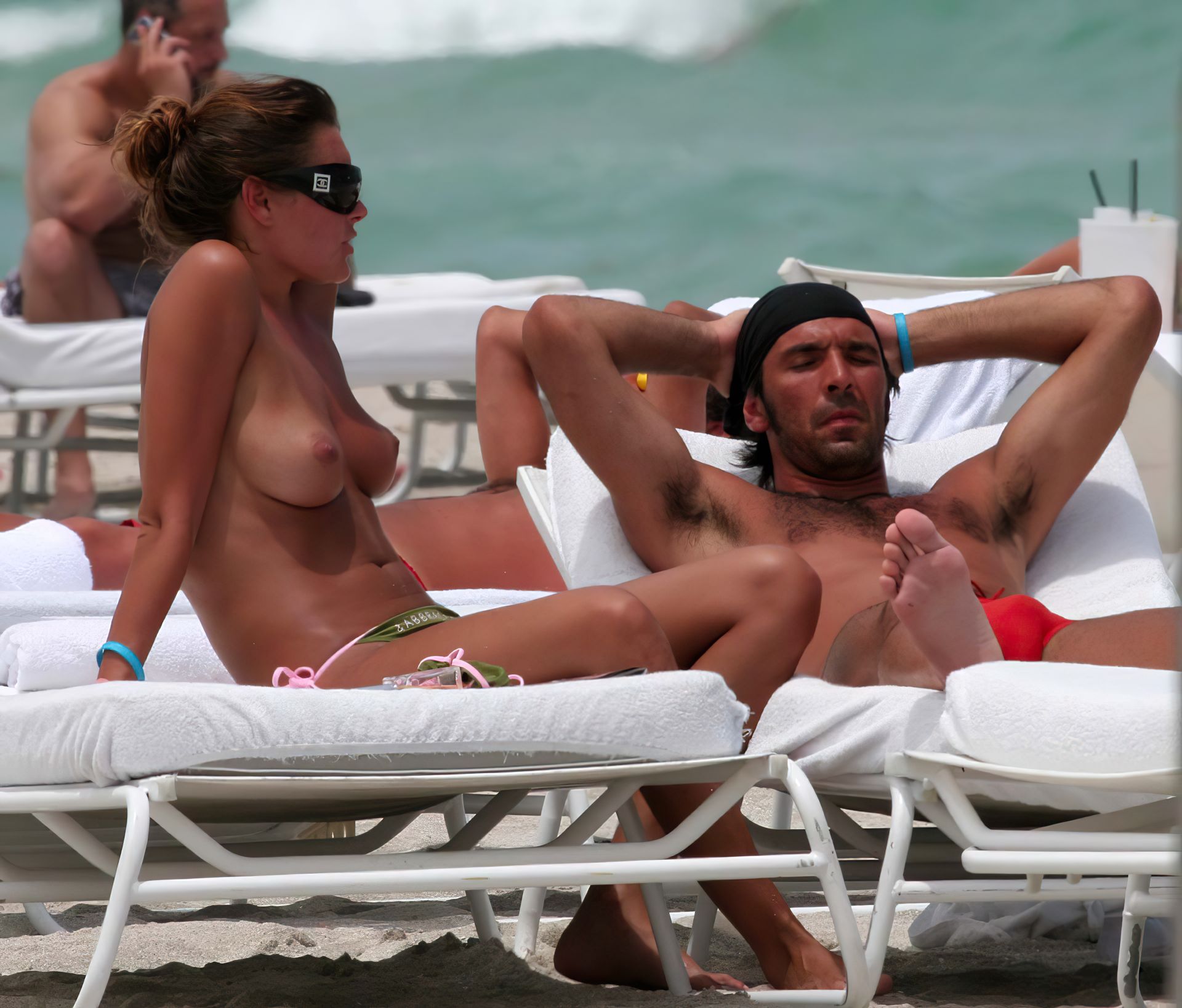 Alena Seredova muestra sus pechos desnudos para los paparazzi mientras disfruta de un día con su famoso amante en la playa (julio de 2005). Alena Šeredová (nacida el 21 de marzo de 1978) es una modelo y actriz checa de Praga, que vive en Italia.