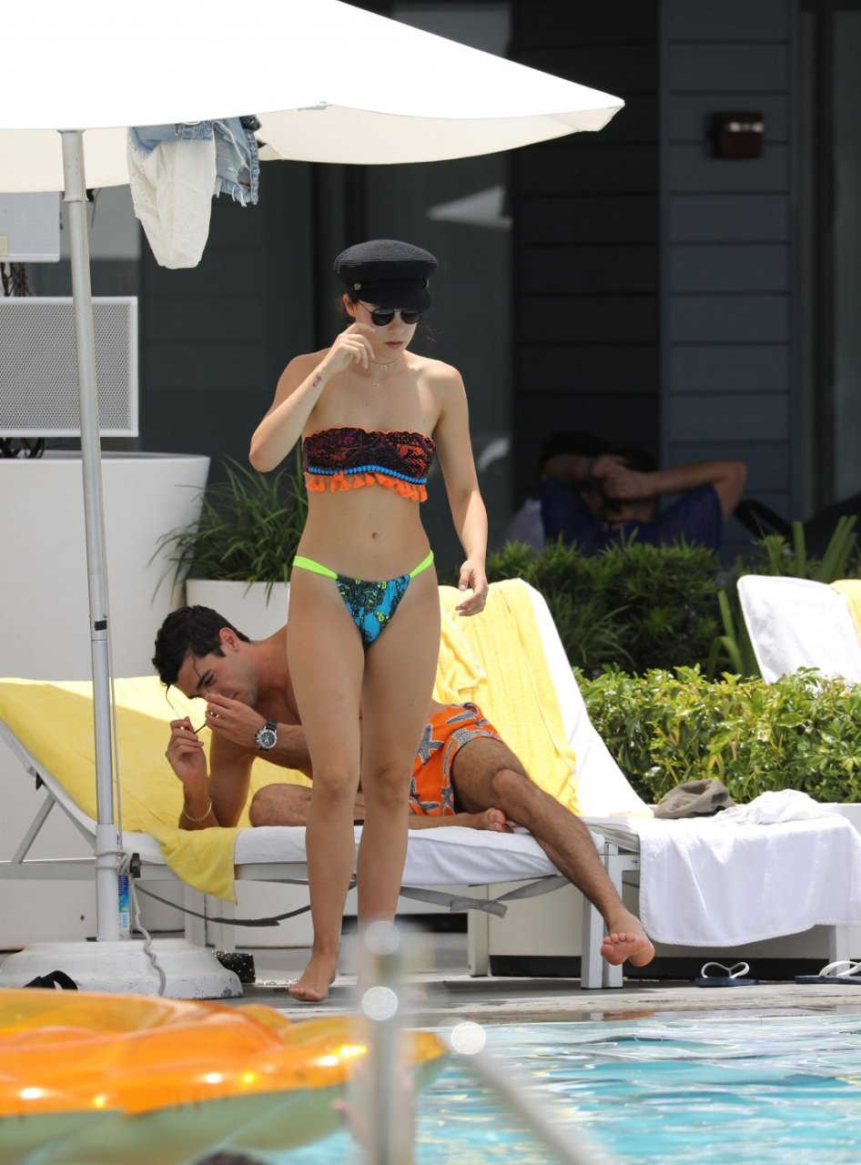 Aurora Ramazzotti fue vista disfrutando de un día en la piscina con su novio, 20/07/2018.