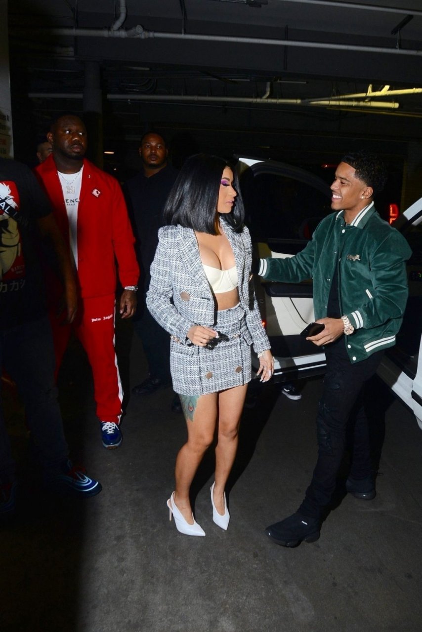 Cardi B y Offset continúan sus celebraciones de cumpleaños en el club nocturno Argyle después del concierto de Drake en el Staple Center en Los Ángeles, 14/10/2018. Cardi luce un brillante collar con su nombre y presumió sus curvas con un top plateado escotado.