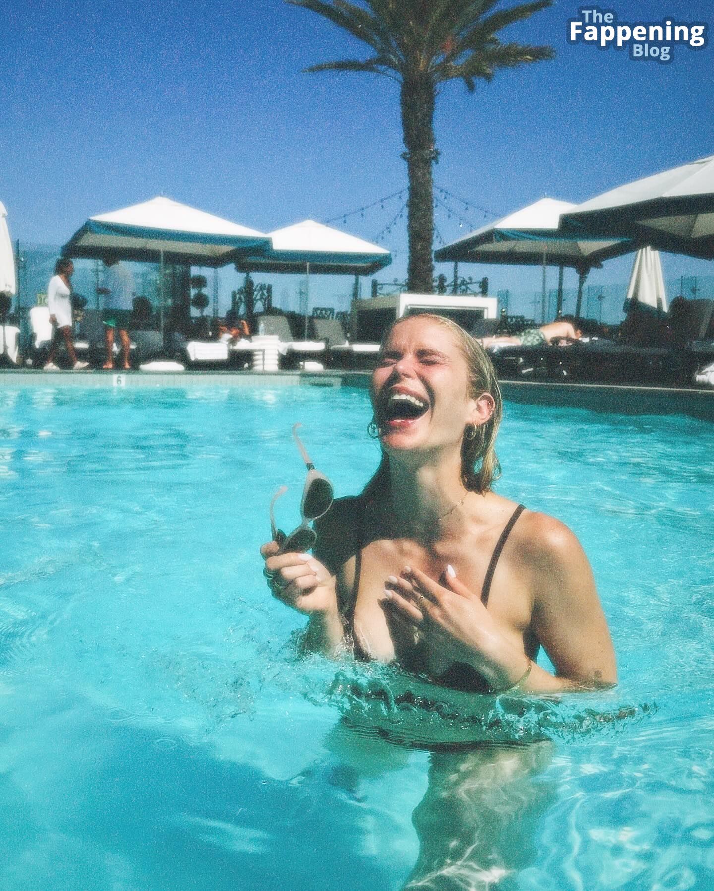 La nueva foto topless de Erin Moriarty está impresionante, luciendo solo la parte inferior de un bikini tanga, mostrando su cuerpo esbelto, cubriéndose la parte superior y levantando el dedo medio.