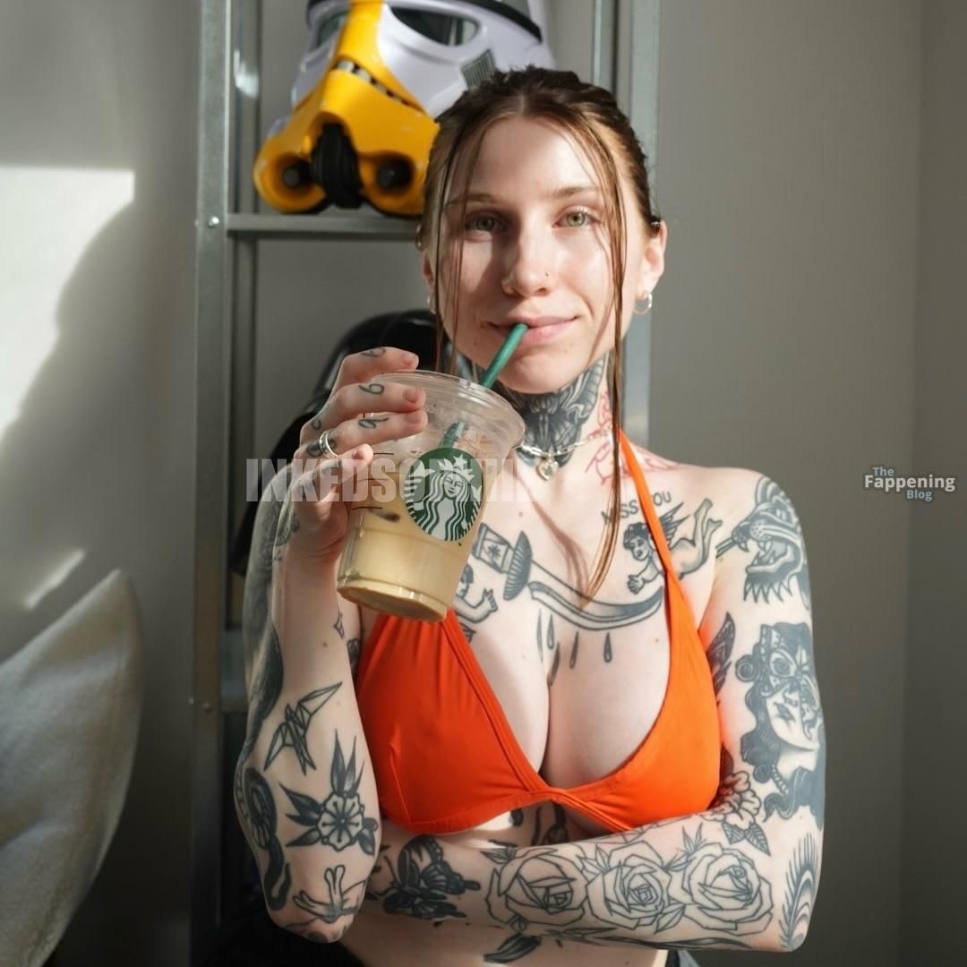 La modelo alemana de OnlyFans InkedSophiie aparece en una nueva mezcla de fotos desnudas y capturas de pantalla.