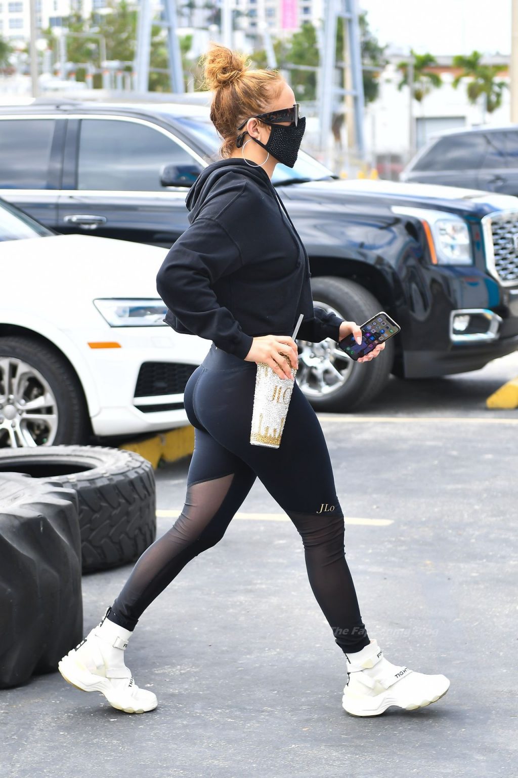 Jennifer Lopez lleva leggings personalizados camino al gimnasio en Miami (43 fotos)
