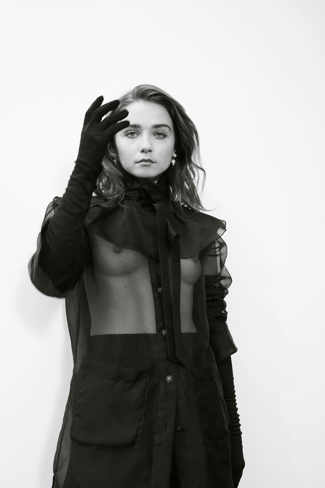 Jessica Barden muestra sus pechos, vistiendo una blusa negra transparente en una sesión de fotos para Hunger Magazine (noviembre de 2019).