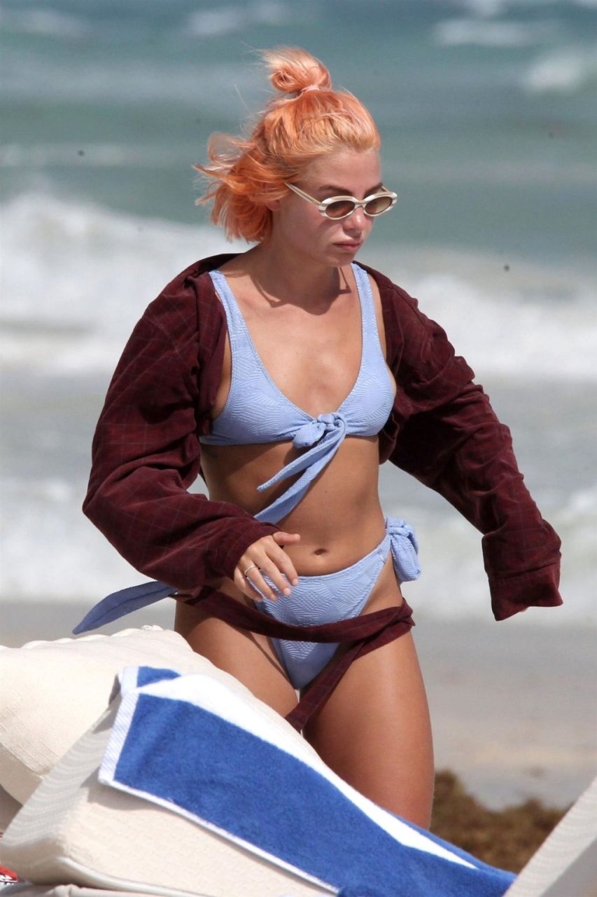 La ex estrella de “Made In Chelsea” Jessica Woodley y su padre disfrutan de un paseo por la playa durante sus vacaciones en Tulum, 13/12/2018. Jess mostró su cuerpo tonificado en bikini azul claro mientras tomaba algunas bebidas después de su paseo.
