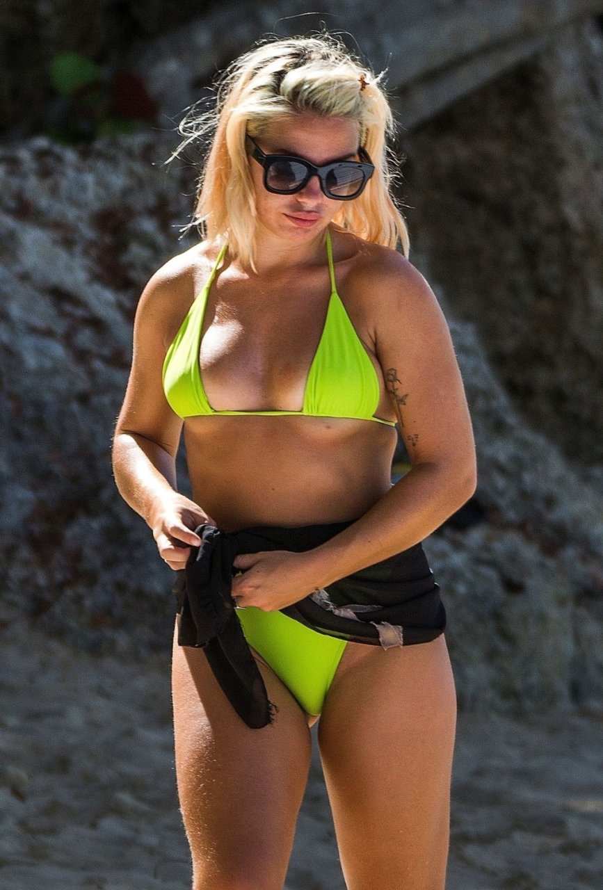 Jessica Woodley de Made in Chelsea fue vista disfrutando de un baño temprano en la mañana mientras disfrutaba de unas vacaciones en Barbados, 03/06/2019. La estrella de reality mostró su cuerpo tonificado de playa mientras llevaba un bikini verde brillante.