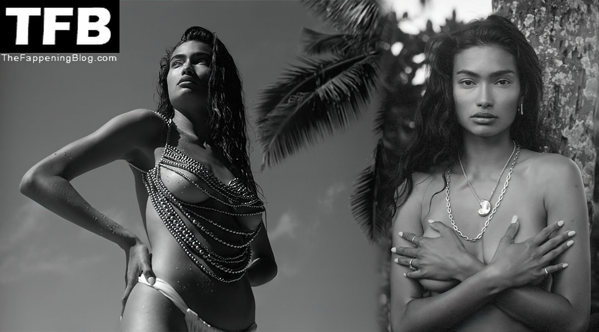 Mira las fotos ligeramente desnudas y sexys de Kelly Gale por Clint para la colección Gooseberry (2021). La modelo de VS muestra sus pechos y pezones marrones mientras posa con varias prendas de lencería de encaje. ¡A nuestros fanáticos les gustan estas fotos promocionales!