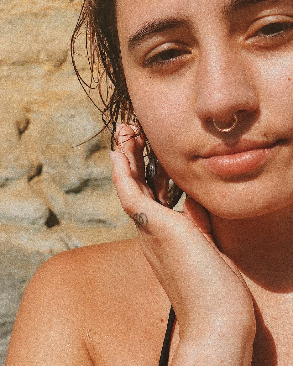 Joven atractiva con un piercing en la nariz, Lia Marie Johnson tiene un desliz de pezón durante una transmisión en vivo en Instagram, 18/07/2018. ¿Fumó después del sexo? :) Lia Marie Johnson es una actriz de cine, cantante y estrella de las redes sociales de 21 años (1.4 millones de seguidores).
