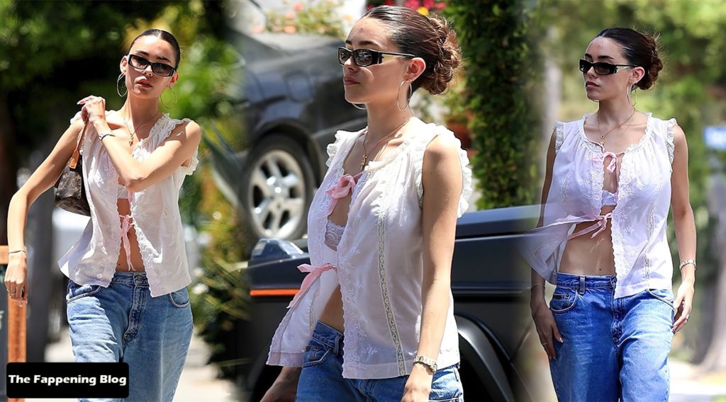 Madison Beer luce jeans de tiro bajo con un top de encaje transparente para un día en Los Feliz (21 Fotos)