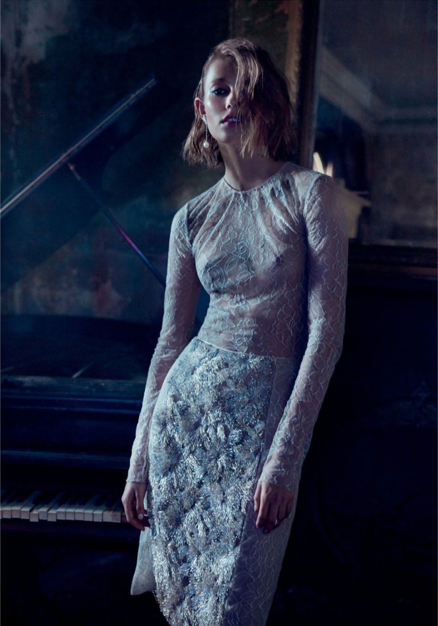 Mali Koopman lleva un sujetador y una blusa transparentes mientras posa en la sesión fotográfica de Ben Hassett para Vogue Japón (marzo de 2017). Mali Koopman es una modelo de Australia. Edad: 19 (6 de febrero de 1997).