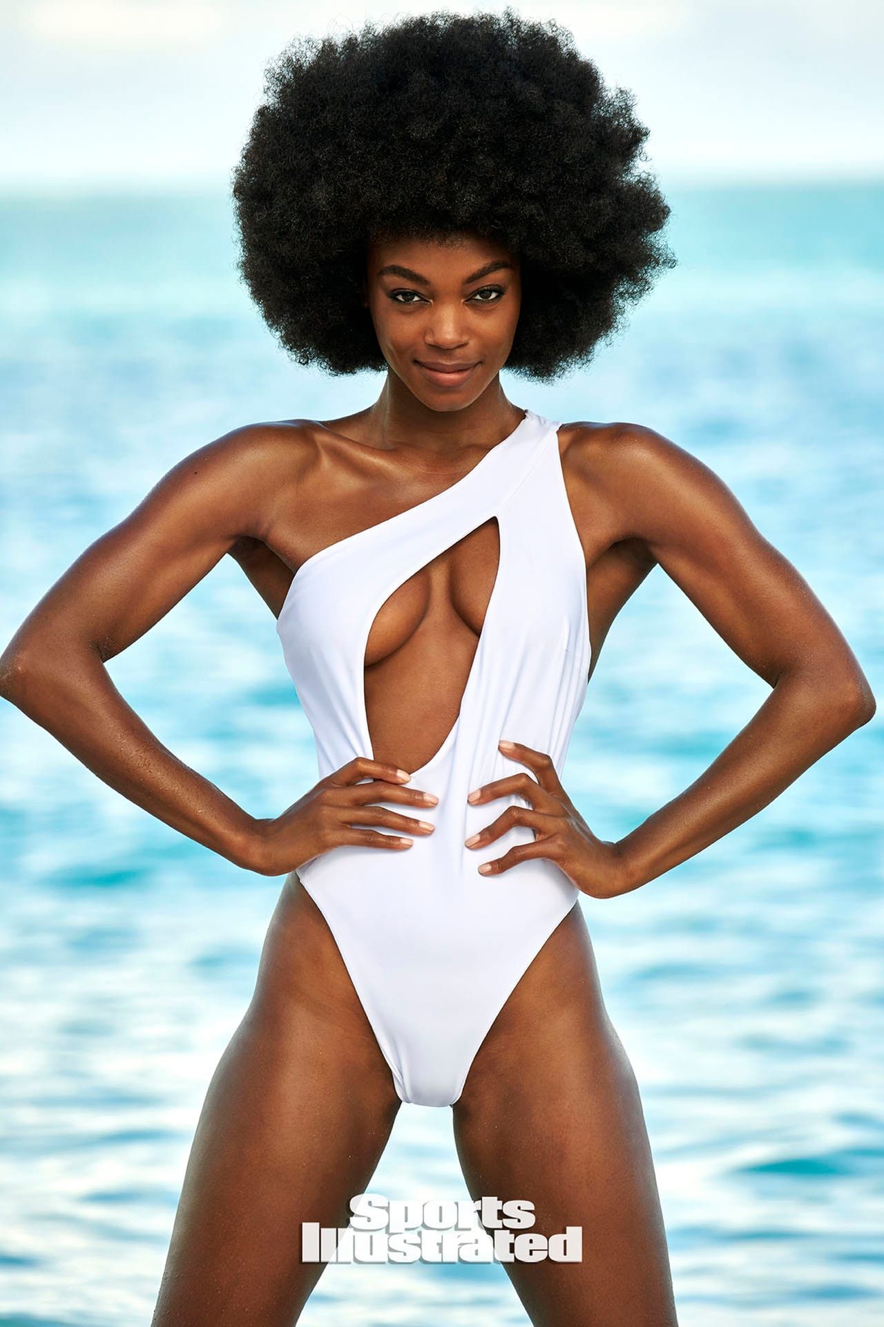 Modelo afroamericana muestra su cuerpo en forma y sexy en la playa con bikinis en una sesión de fotos para la Edición de Trajes de Baño 2020 de Sports Illustrated.