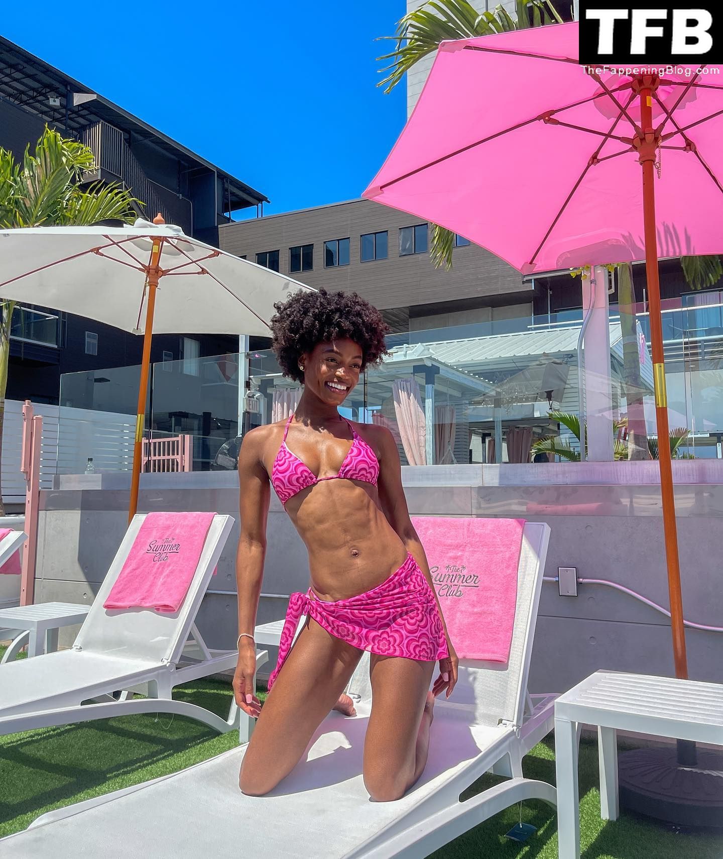 La modelo de Sports Illustrated Tanaye White muestra su sexy figura esbelta en bikini en las fotos a continuación (2021-2022).