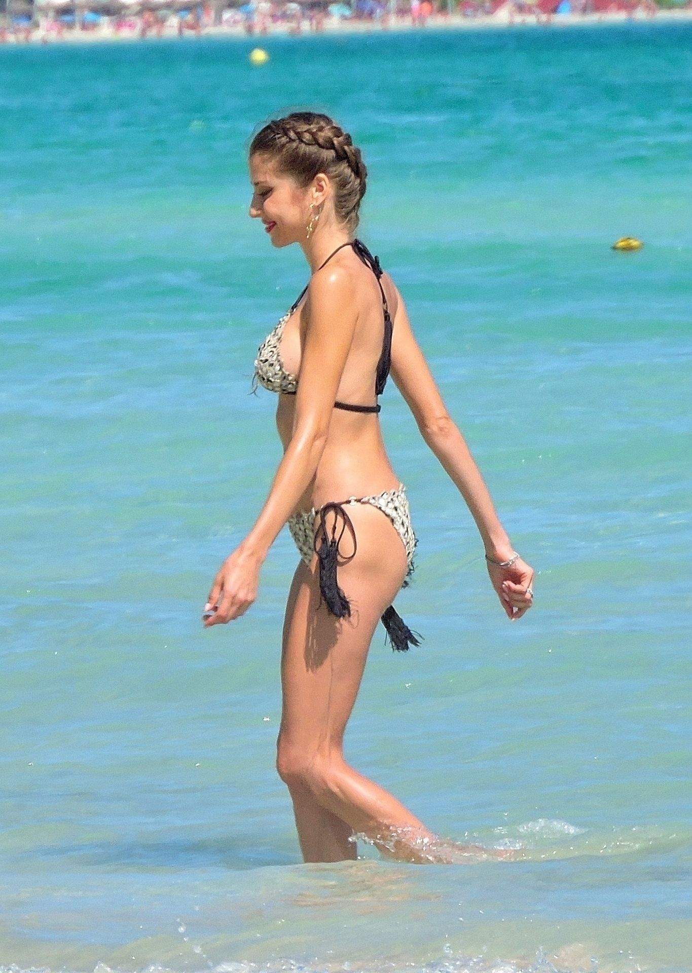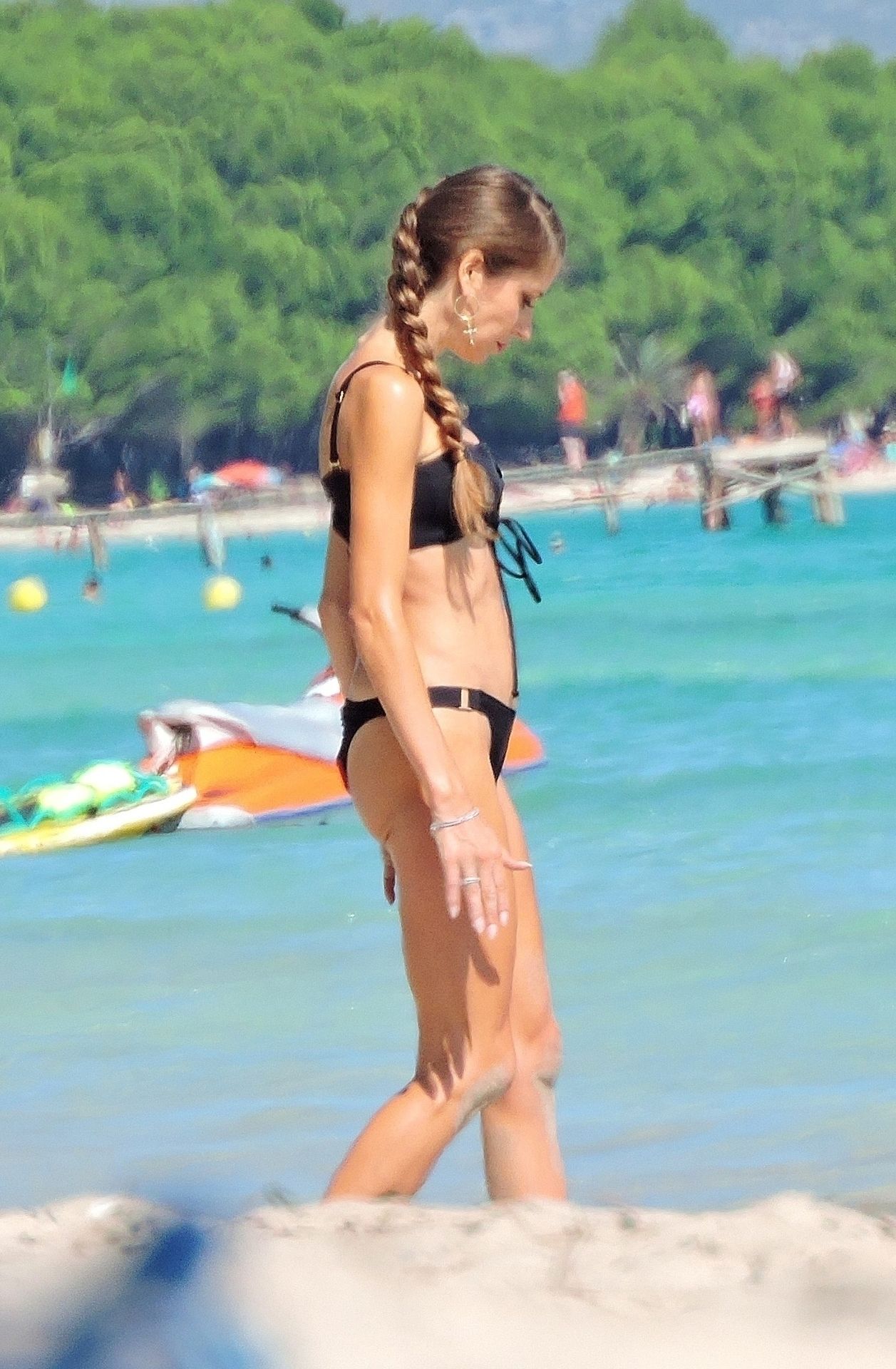 La presentadora Cathy Hummels, esposa del futbolista alemán Mat Hummels, luce bikinis deportivos mientras está en la playa de Palma de Mallorca, 12/09/2020.