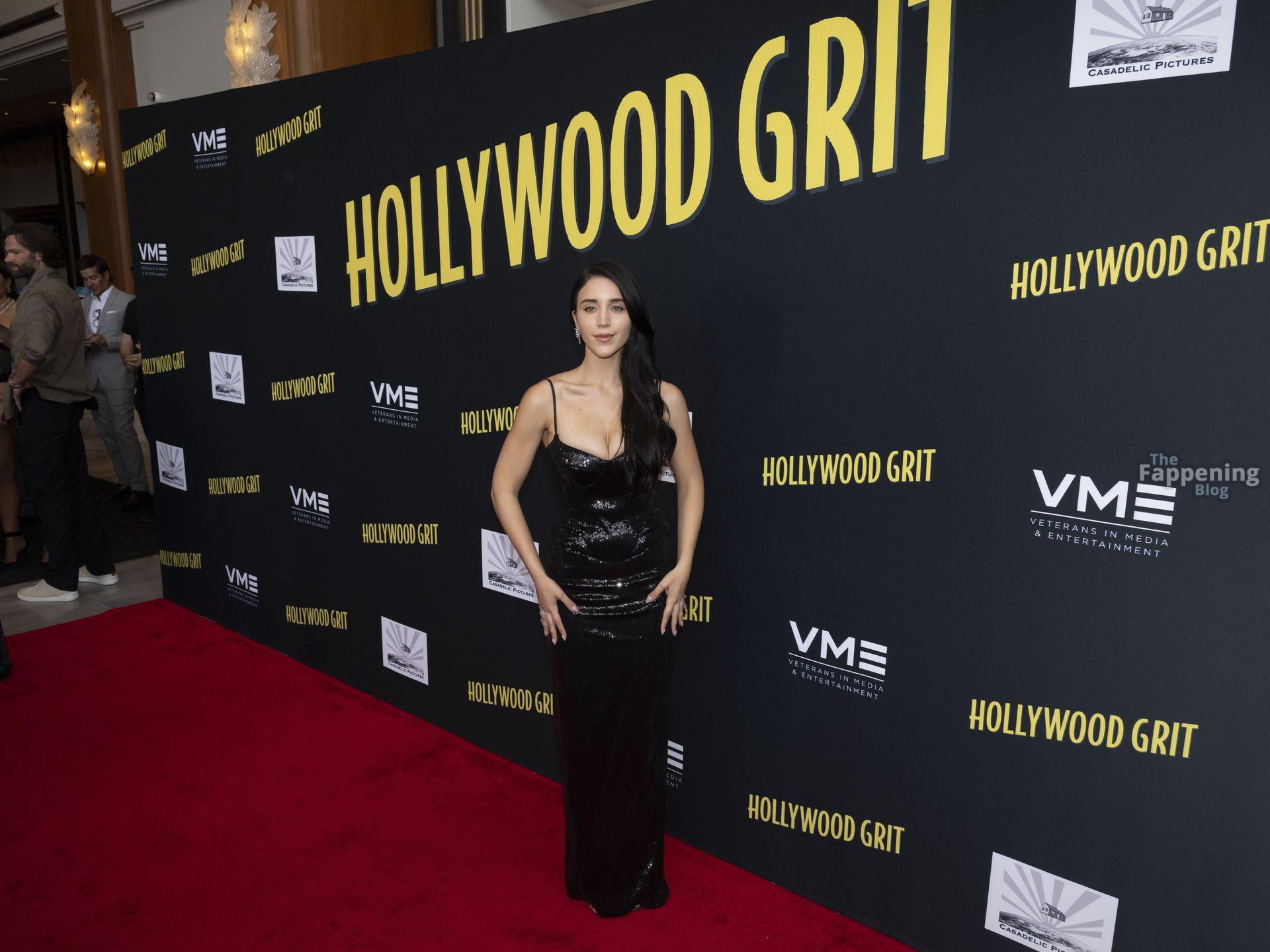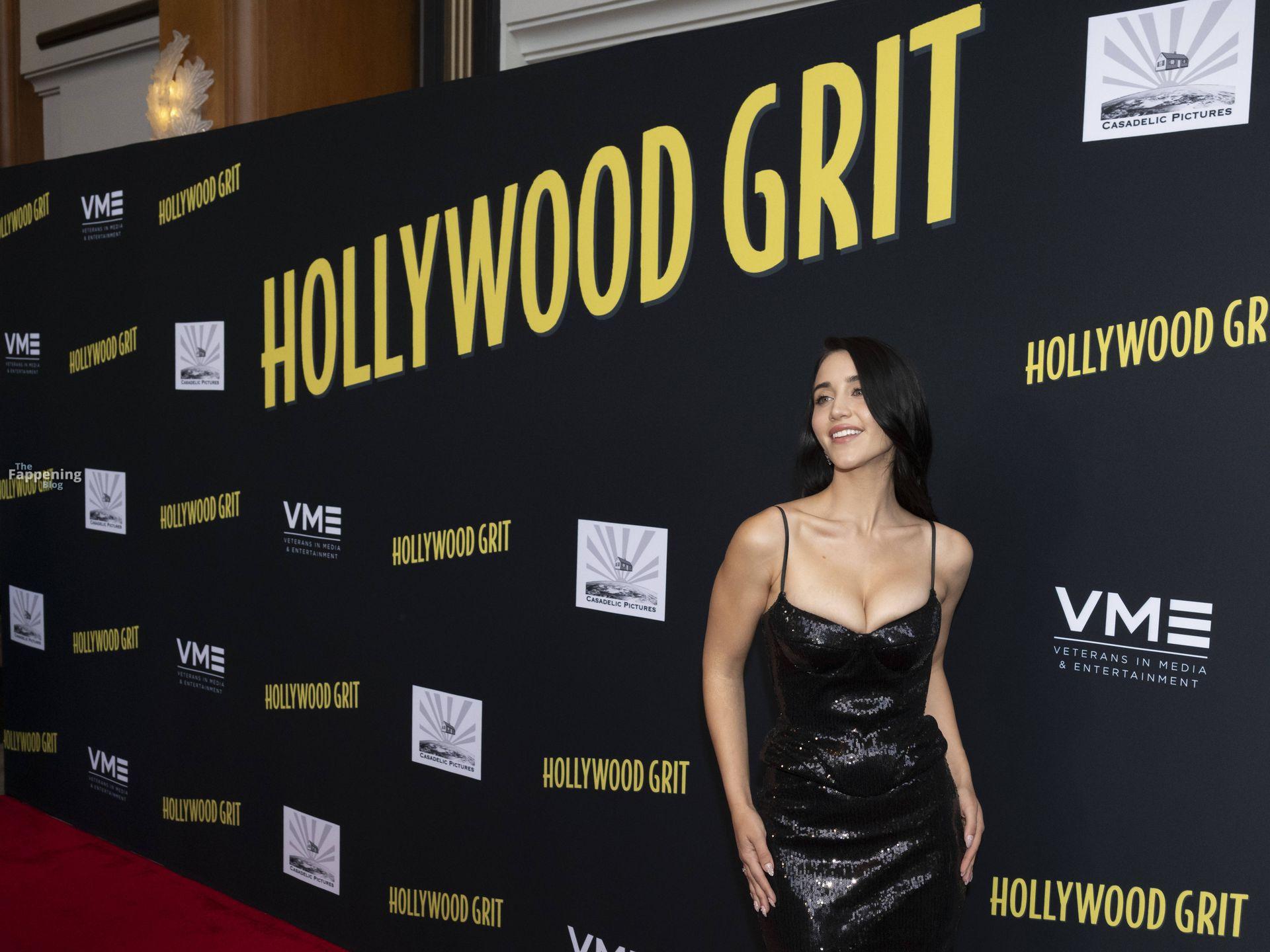 Actriz y modelo Caylee Cowan asiste al estreno de “Hollywood Grit”, luciendo un elegante vestido negro de lentejuelas que mostraba su escote.
