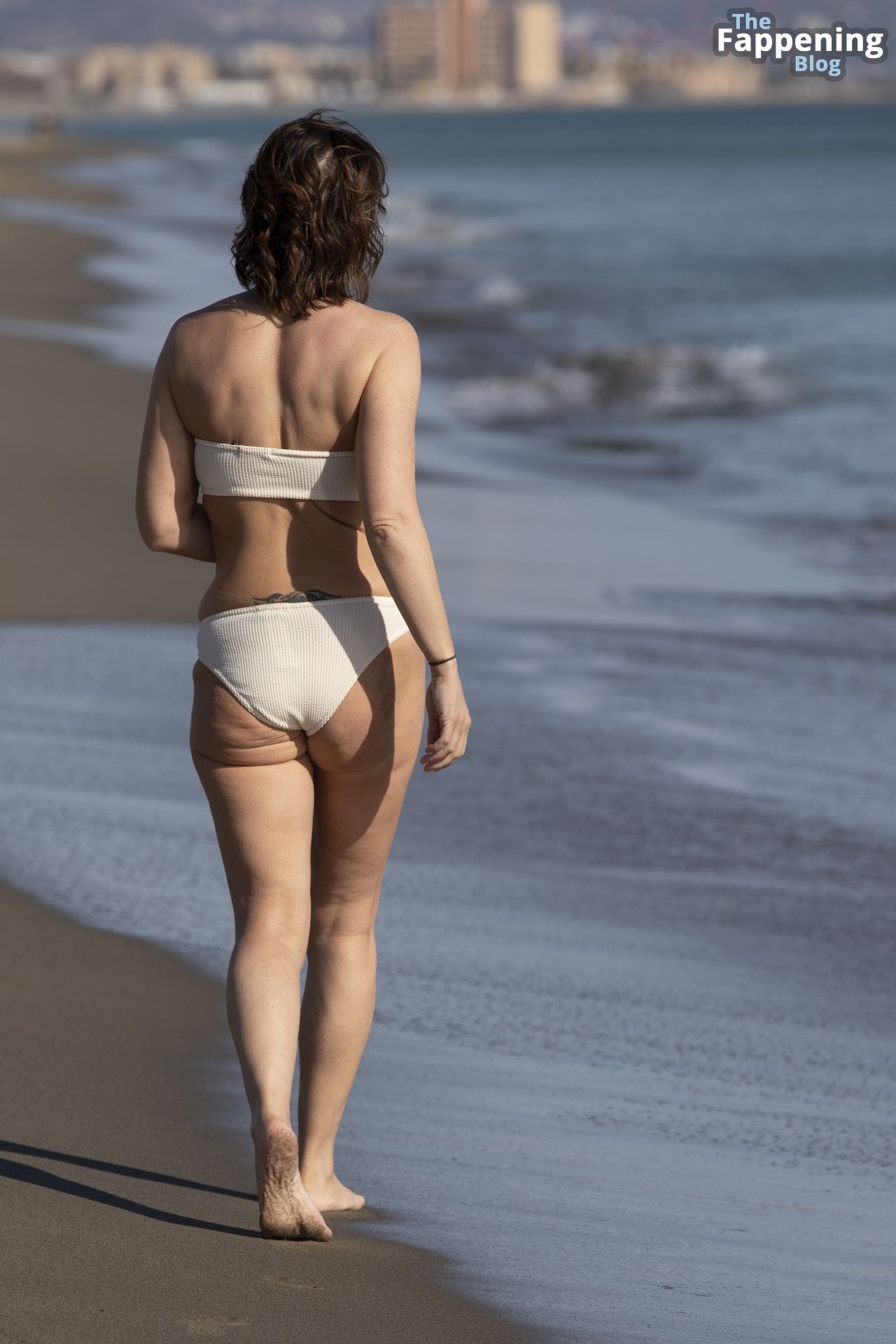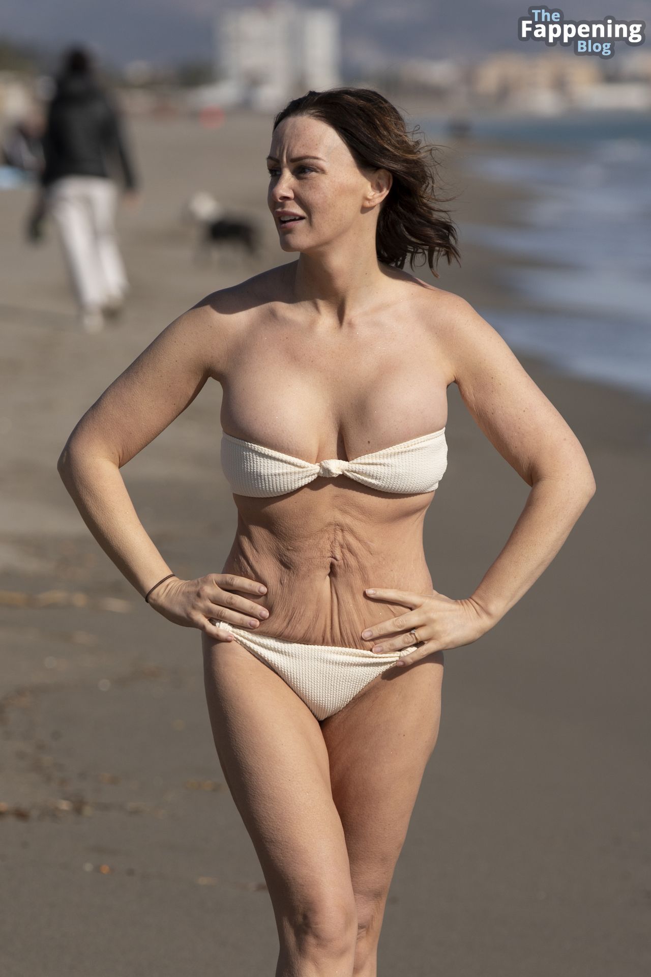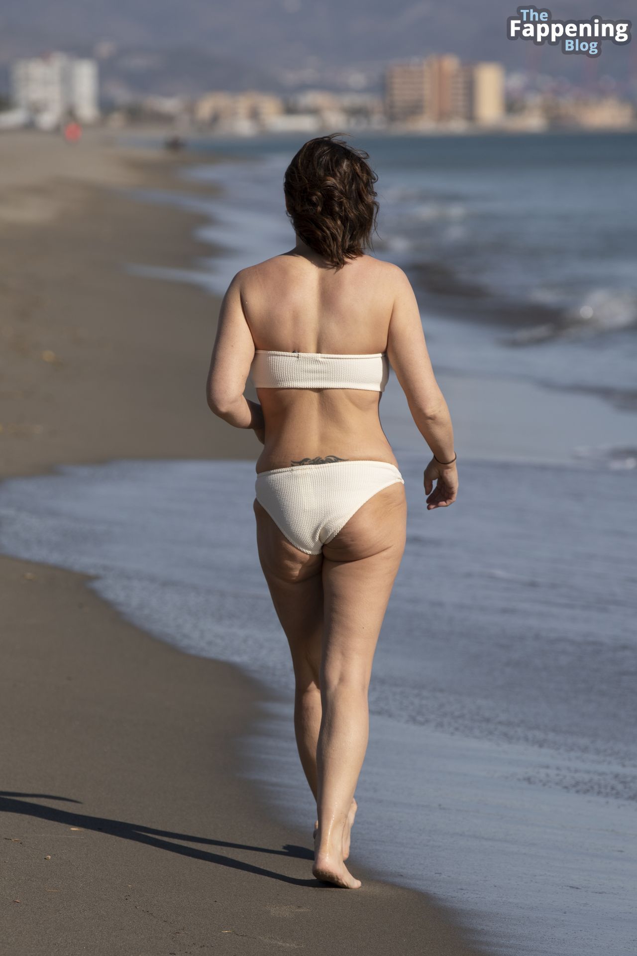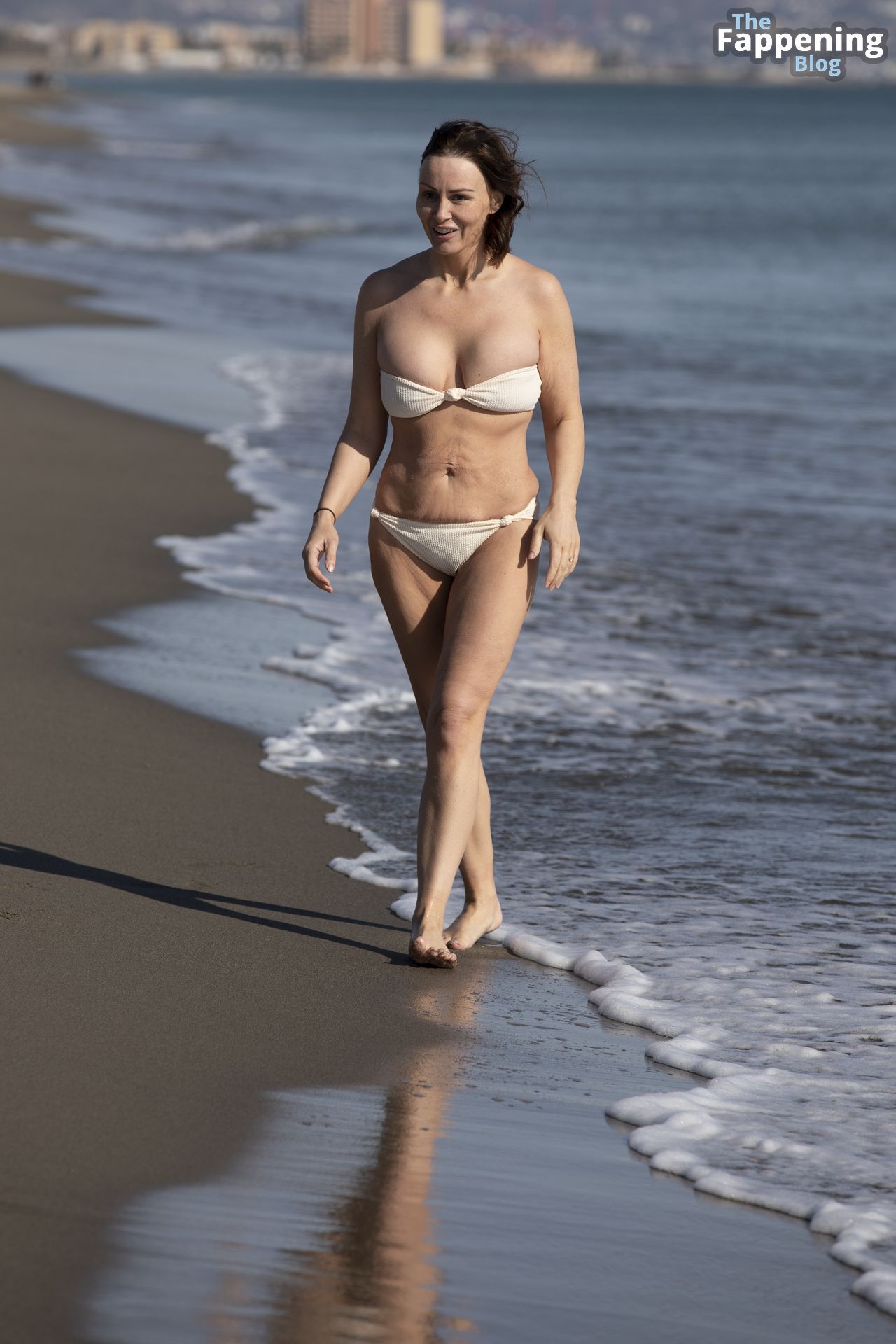 Chanelle Hayes parece estar en su mejor forma hasta ahora, habiendo perdido 9 piedras y sometiéndose a una cirugía que la transformó de una talla 18 a una talla 10. Vestida con un bikini crema, Chanelle mostró su notable pérdida de peso mientras disfrutaba de la playa en España, 23/02/2023.