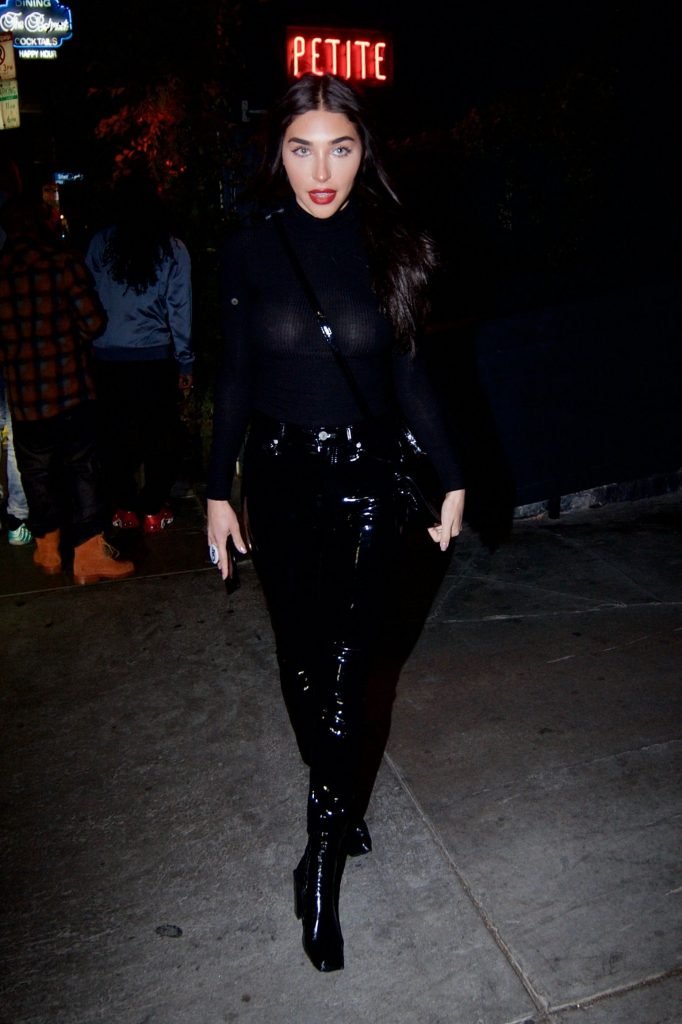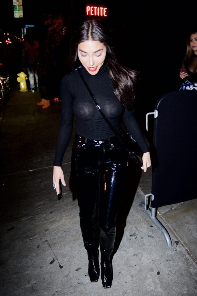 Impresionante Chantel Jeffries lleva un suéter negro transparente mientras salía del restaurante ‘Petite’ en West Hollywood, 20/10/2017. Chantel Jeffries, también conocida como CeeJay The Dj, es una modelo estadounidense, estrella de las redes sociales y exnovia de Justin Bieber. Edad – 24 años.