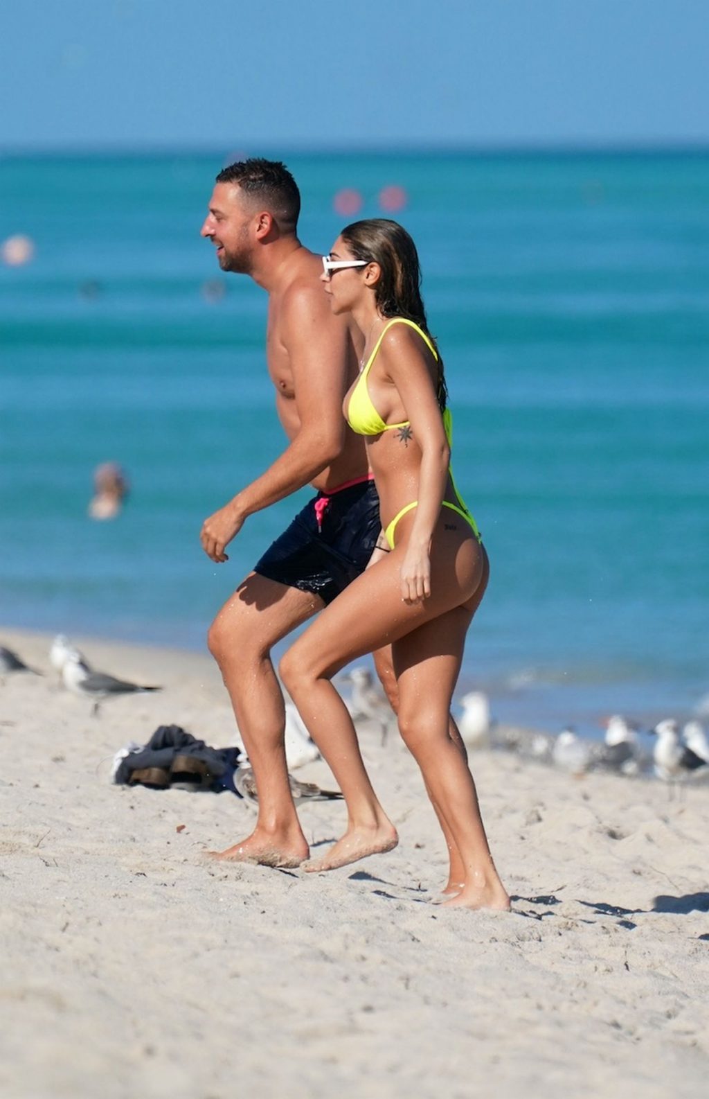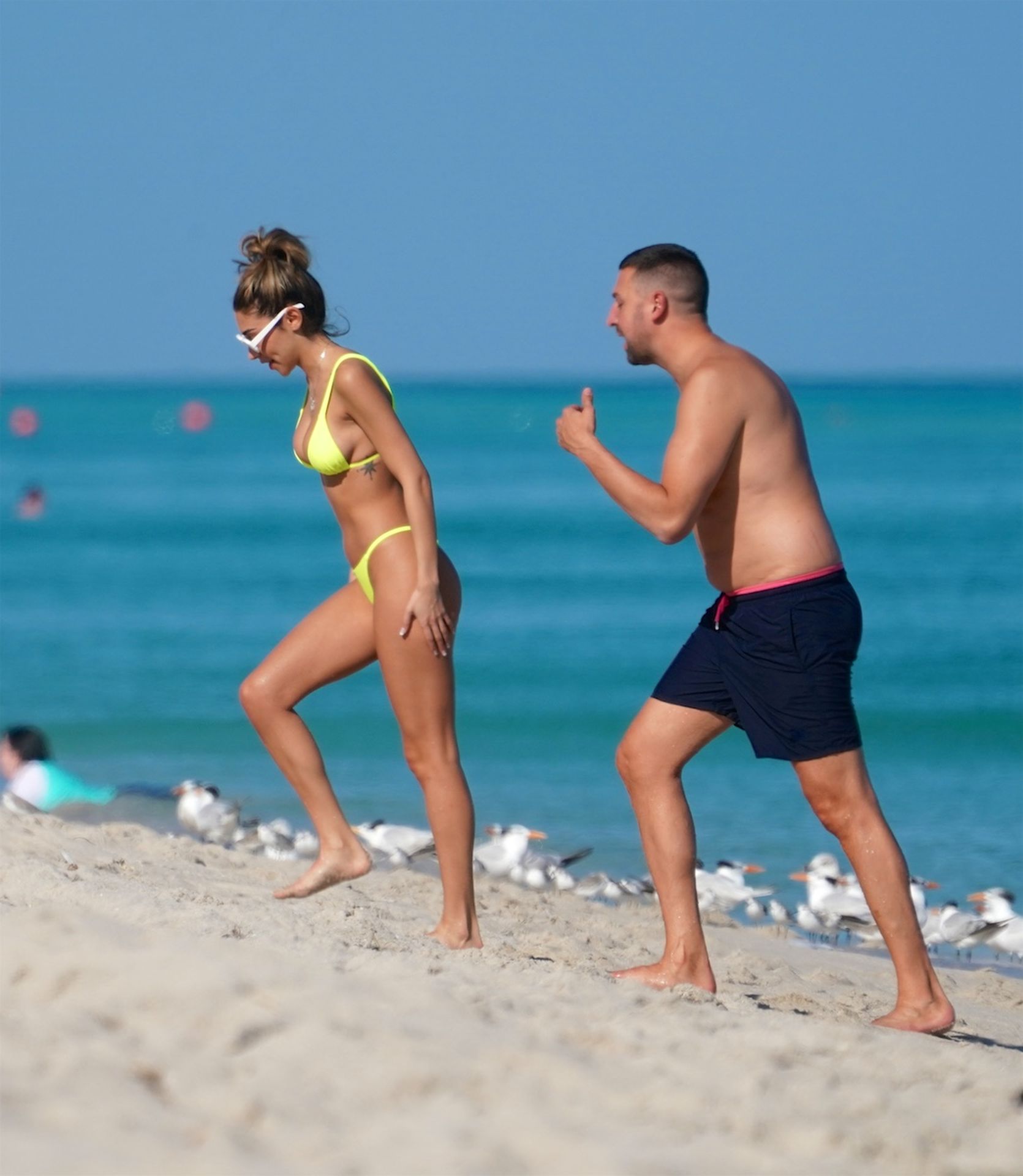La exnovia de Justin Bieber, la estrella de The Fappening Chantel Jeffries, fue vista en un bikini tanga neón en la playa con un hombre misterioso en Miami Beach, 12/02/2019.
