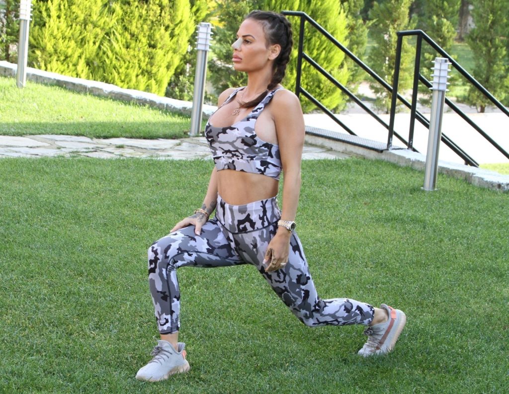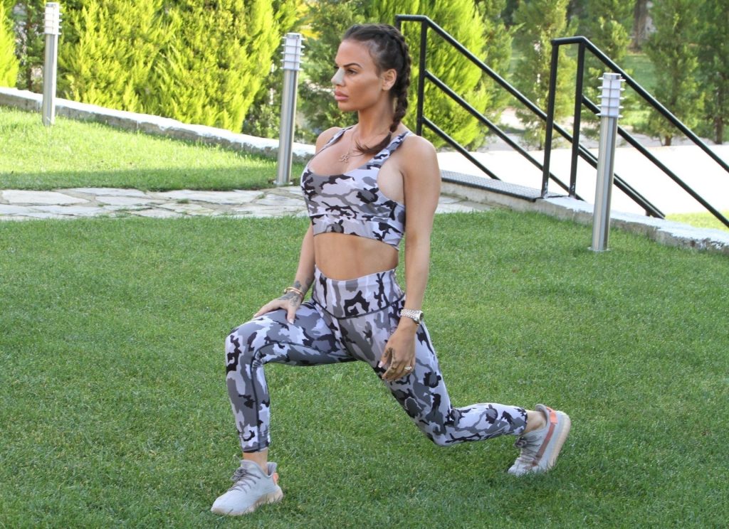 Chantelle se veía deportiva mientras hacía una serie de ejercicios en su escapada turca, mezclando un poco de negocios y placer y manteniendo su cuerpo tonificado en forma.
