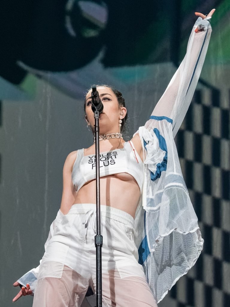La cantante Charli XCX (25) muestra un bonito underboob en el escenario durante el concierto en Orlando, 21/10/2017.