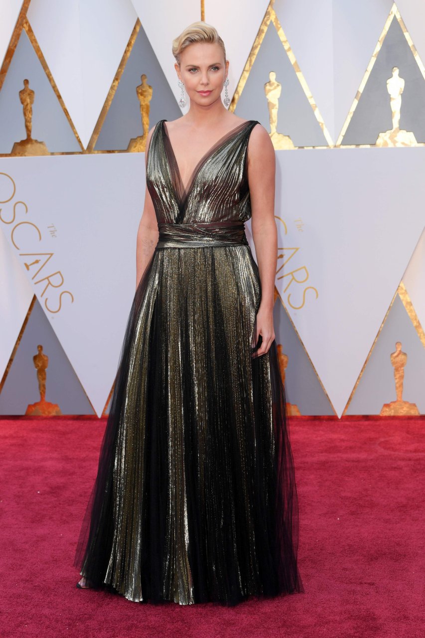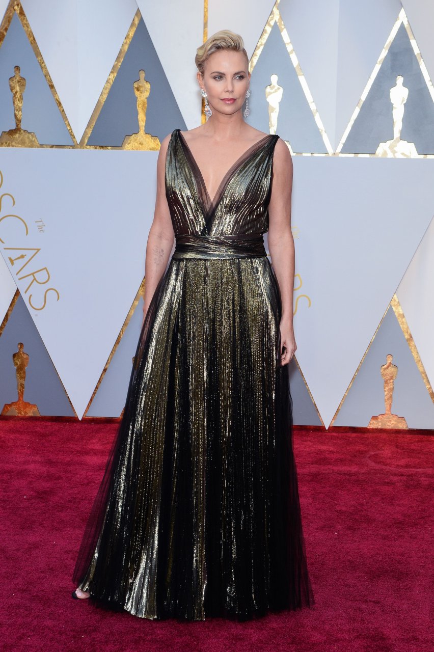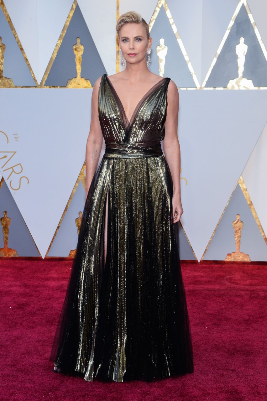 Charlize Theron lleva un vestido sexy sin sostén en la 89ª Entrega Anual de los Premios de la Academia en Hollywood, 26/02/17. Charlize Theron es una actriz sudafricana/estadounidense (2 Days In The Valley (1996)), productora y modelo de moda. Edad: 41 (nacida el 7 de agosto de 1975).