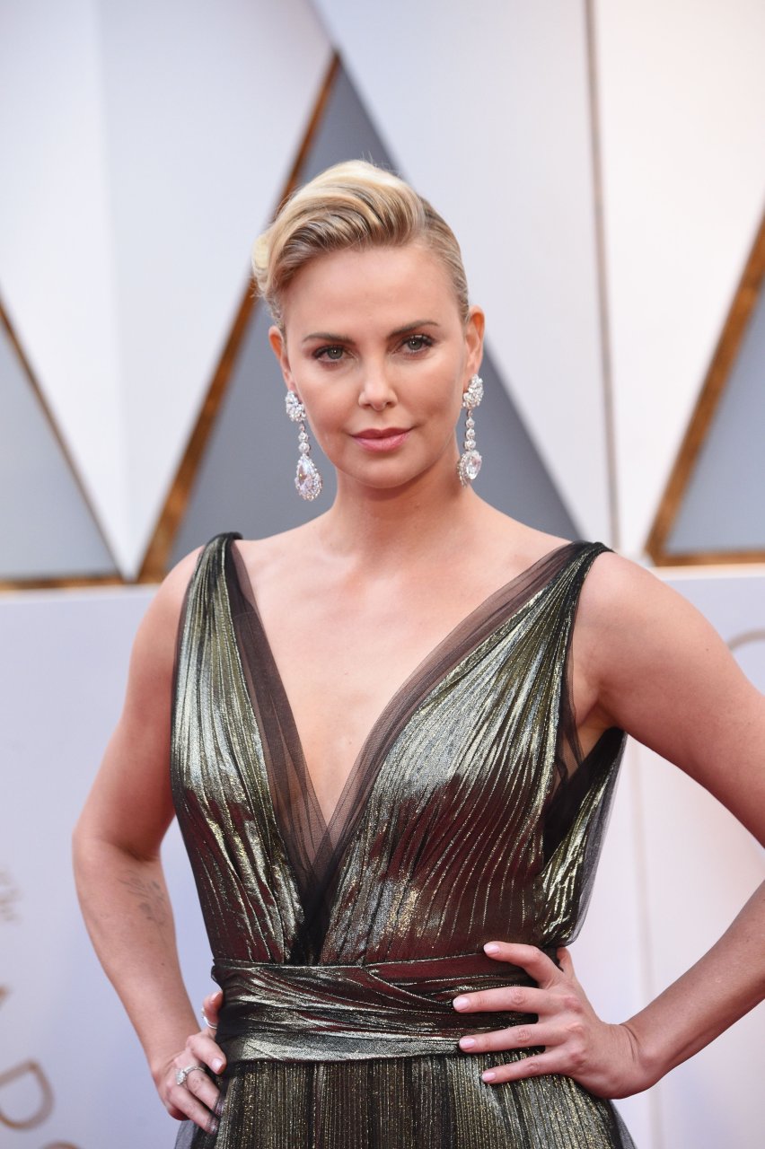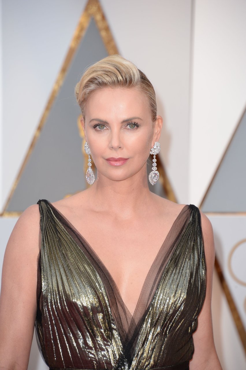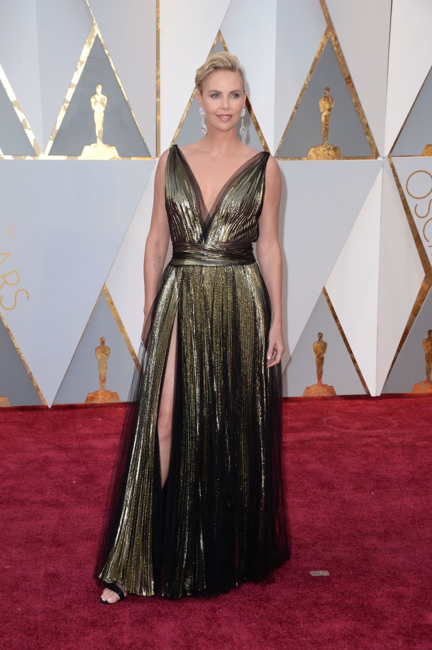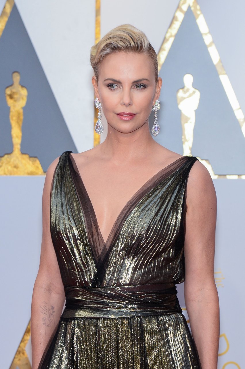 Charlize Theron lleva un vestido sexy sin sostén en la 89ª Entrega Anual de los Premios de la Academia en Hollywood, 26/02/17. Charlize Theron es una actriz sudafricana/estadounidense (2 Days In The Valley (1996)), productora y modelo de moda. Edad: 41 (nacida el 7 de agosto de 1975).