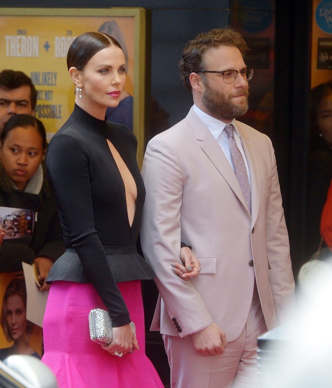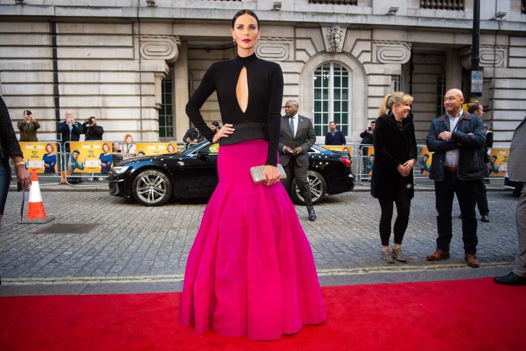 Esta vez, Theron, de 43 años, llegó al estreno de la película dirigida por Jonathan Levin con un vestido contrastante en negro y rosa de Givenchy. Su estilo puede llamarse clásico. La forma inusual del escote atrajo toda la atención.